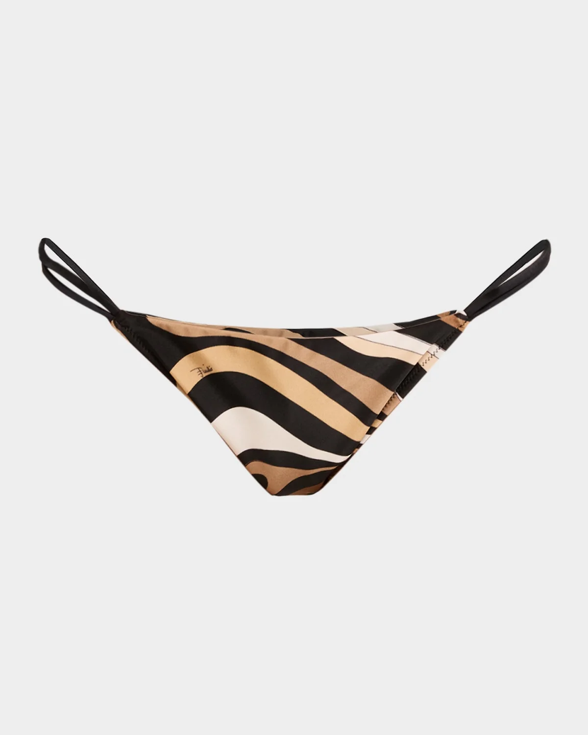 These Pucci bikini bottoms are crafted of stretch Lycra with UVprotection, featuring a wavy striped print and double side straps Lowrise sits low on the hips Cheeky seat coverage Nylon/polyamide/elastane Made in Italy Top sold separately