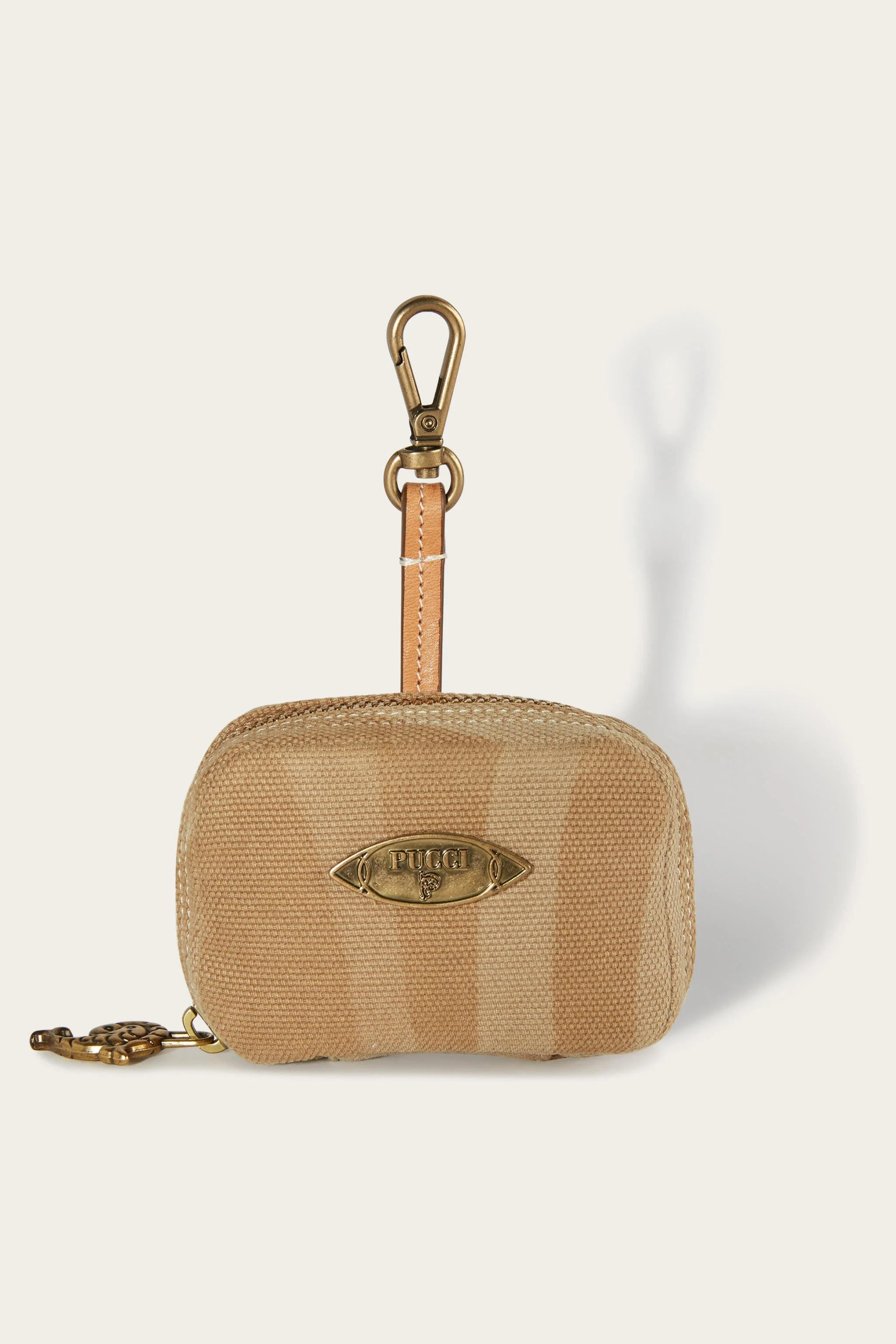 Compact and versatile, perfect for adding a touch of style to your essentials. This mini pouch, made of gabardine fabric with a laser-etched Marmo design, combines practicality and elegance in one. Ideal for storing AirPods and credit cards, it features a convenient zipper and a hook that also allows you to use it as a decorative bag charm.Distinctive details, such as the enameled Pucci plaque and Pesci-shaped zipper pull, celebrate the brand's unmistakable aesthetic. The Marmo wash in a sand hue makes this case a unique and sought-after piece. - To offer you a unique Pucci garment, we use an all-over print that makes the product unrepeatable. Therefore, the pattern print may vary from the one displayed in the photo. - Sand - Outer: 100% Cotton gabardine with laser-embossed Marmo design - Detail: Cowhide leather (Calf - Bos taurus) - Interior: 100% Polyamide - Zip and hook-and-eye closure - Enameled Pucci plaque - Pesci-shaped zipper - Do not wash - Made in Italy - ID: 5HSK165H999A02
