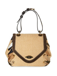 Tressage woven tote bag Highlights - Beige/brown/black - Cotton blend - Leather trim - Interwoven design - Applique logo - Lace-up detailing - Adjustable shoulder strap - Foldover top with magnetic fastening - Main compartment Made in Italy Composition Outer: Leather 100%, Silk 100%, Cotton 52%, Nylon 48% SIZE & FIT Measurement DEPTH 5.11 in(13 cm) HEIGHT 7.87 in(20 cm) WIDTH 10.23 in(26 cm)