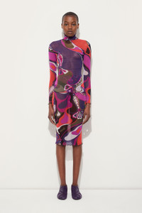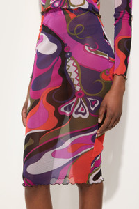 Lightness and color come together in this fitted midi skirt, crafted in stretch tulle that drapes like a second skin. The Orchidee print—created in 1966 and inspired by Eastern aesthetics and nature—is rendered in a stylized, harmonious, and enveloping floral motif. Perfect for completing more graphic or romantic looks. - To offer you a unique Pucci garment, we use an all-over print that makes the product unrepeatable. Therefore, the pattern print may vary from the one displayed in the photo. - Multicolor - Lightweight stretch tulle - 94% Polyamide, 6% Elastane - Orchidee all-over print - Fitted fit - Midi length - Dry clean only - Made in Italy - ID: 5UJV135U839017