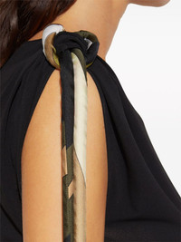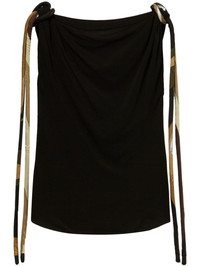 Vivara-knot top The simple black base of this PUCCI top is elevated thanks to knotted strap details at the shoulders. Saturated with the brand's signature Vivara print in shades of green and brown, they add an animating touch. Highlights - Black - Abstract pattern print - Knot detailing - Boat neck - Sleeveless - Curved hem Made in Italy Composition Viscose 82%, Nylon 18%