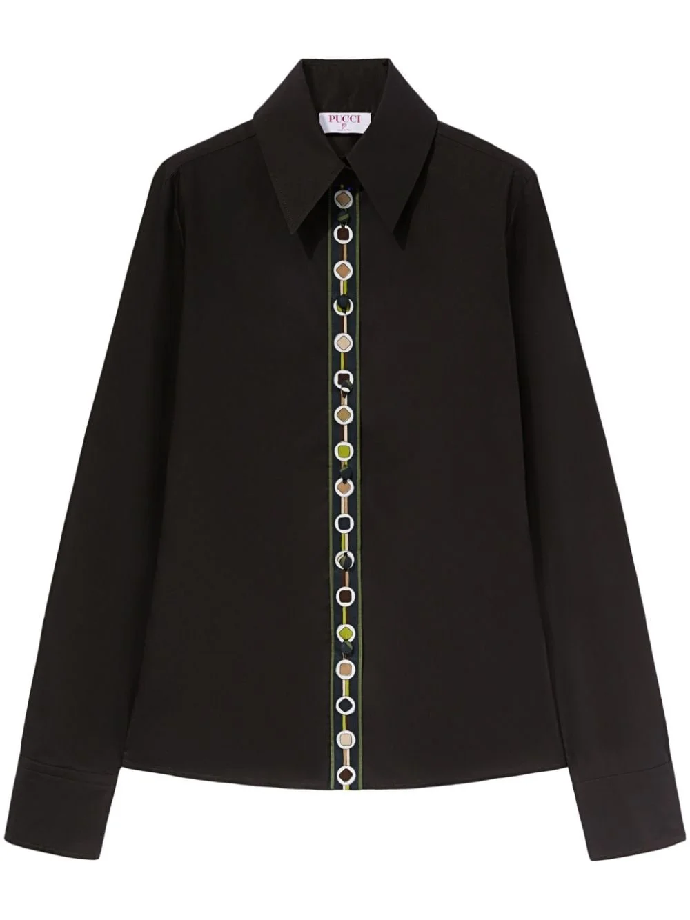Vivara-print cotton shirt Highlights - Black - Cotton - Vivara-print panel detailing - Fabric-covered buttons - Oversized pointed collar - Front button fastening - Long sleeves - Straight hem Made in Italy Composition Cotton 100%
