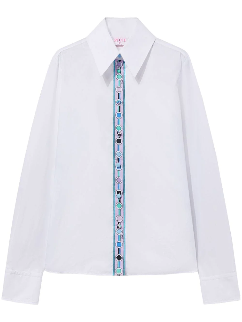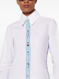 Vivara-print cotton shirt Highlights - White/multicolour - Cotton - Vivara-print panel detailing - Fabric-covered buttons - Oversized pointed collar - Front button fastening - Long sleeves - Straight hem Made in Italy Composition Cotton 100%