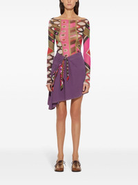 Vivara print miniskirt Highlights - Light purple - Cotton-silk blend - Geometric print - Gathered detailing - Front tie fastening - Concealed side zip fastening - Asymmetric hem - Thigh-length Made in Italy Composition Cotton 65%, Silk 35%