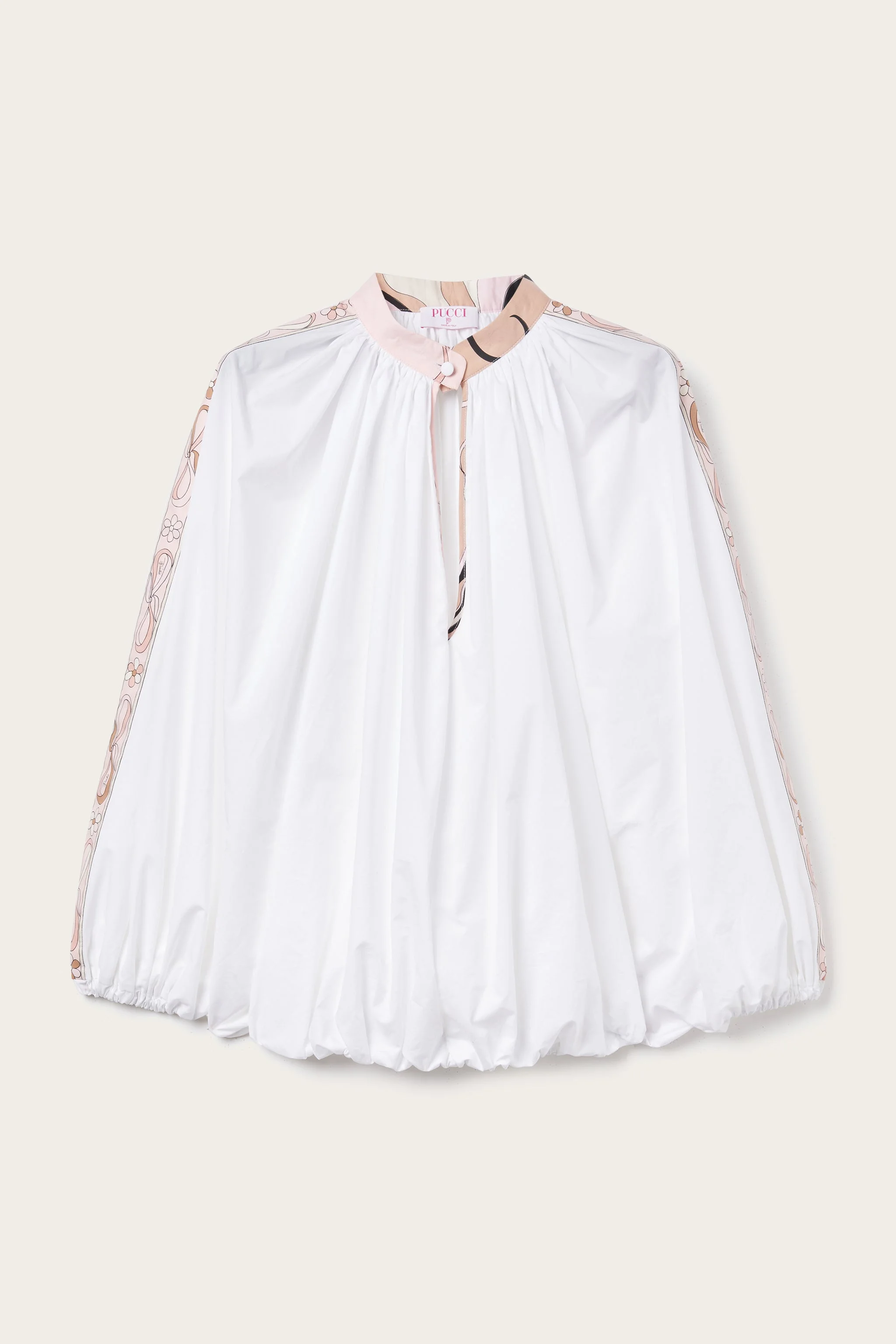 A garment that expresses elegance and freshness, perfect for modern, feminine looks. This blouse, with its mandarin neckline and drop opening at the neckline, is designed for those who love refined details. The rounded sleeves, which gently tighten on the forearm, add volume and movement to the design, creating a harmonious and sophisticated effect.Adorned with Pucci iconic prints on the sleeves and neckline, this blouse is ideal for warm days or to complete a layered outfit. - White - Mandarin neckline with drop opening - Sleeves rounded and tight at the forearm - Main fabric: 100% cotton - Finishing: 100% cotton - Wash gently max 30°C. - Made in Italy - ID: 5HRM205H603100 - The model is 175 cm tall and wears a 38 italian size.