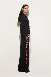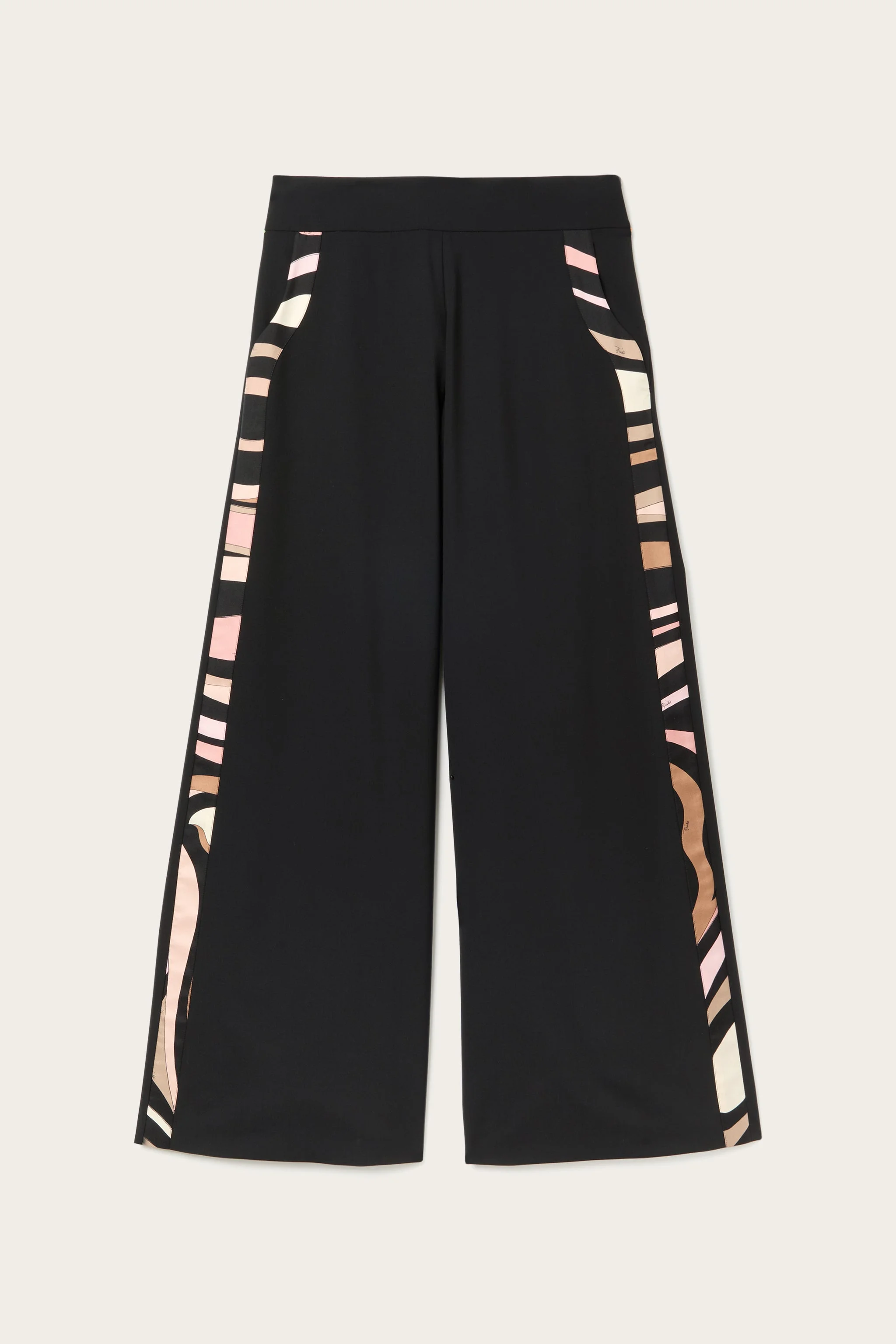 These cady palazzo pants, with their fluid design and mid-rise waist, are perfect for creating refined looks that suit every season. The wide leg lends movement and lightness, while printed details along the leg, waistband, and pocket trim add that unmistakable touch that seems to scream Pucci. Thanks to the cool wool fabric, these pants provide versatility across the board, making them ideal for day and evening and for any season. - To offer you a unique Pucci garment, we use an all-over print that makes the product unrepeatable. Therefore, the pattern print may vary from the one displayed in the photo. - Black - Main fabric: 95% Virgin Wool, 5% Elastane - Inserts: 100% Silk - Wide-leg design - Medium waist - Printed details along the leg, waistband, and pockets - Seasonal functionality thanks to the lightweight weave - Gently dry clean. - Made in Italy - ID: 5HRT165H606999 - The model is 177 cm tall and wears a 38 italian size.