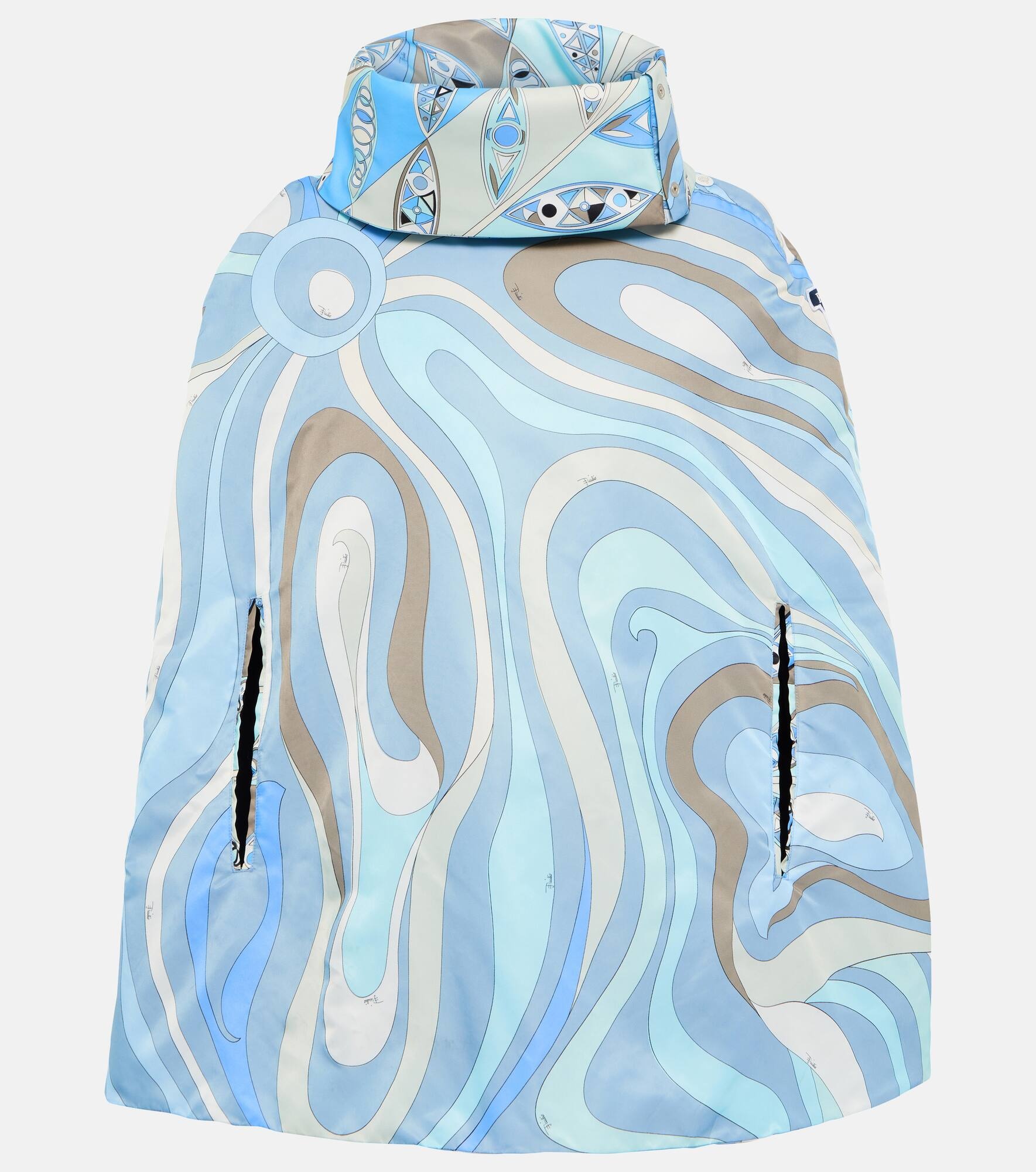 Italian luxury meets performance-driven French skiwear with the Pucci x Fusalp collaboration. This poncho is made from printed technical fabric with bold and colorful swirls, and features a high neck for warmth. Product Details - Closure: snap-buttoned fastenings - Made in Italy - Insert: 100% polyester - Designer color name: Celeste - Pockets: side slit pockets - Material: 100% polyamide - Care instructions: dry clean - Item number: P00770280 Size & Fit - True to size - One size: perfect fit for sizes XS-XL - Oversized - Mid-weight material - Falls below the hip - One size