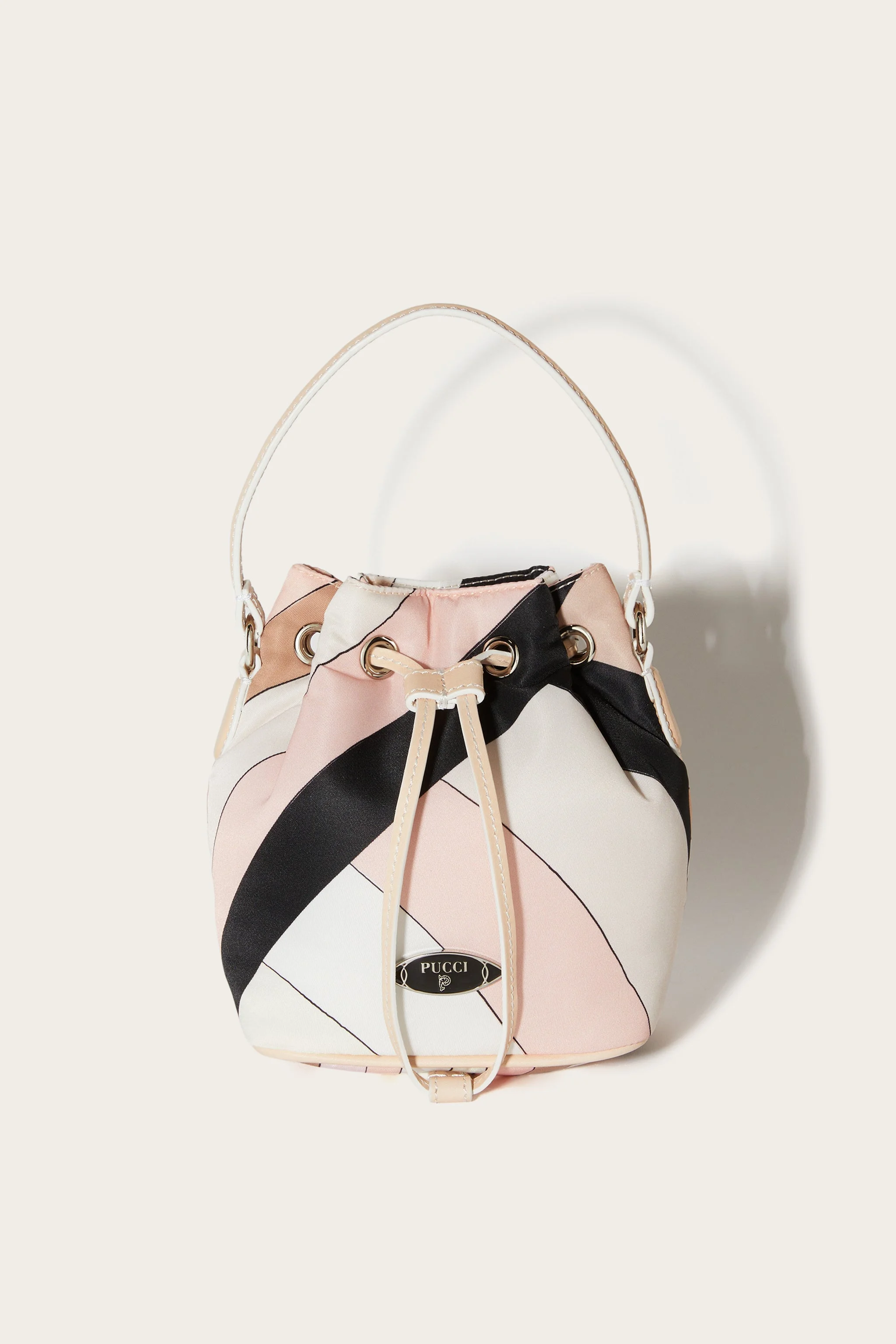 Versatile, modern and full of refined details: this bucket bag is the perfect accessory to accompany you on the most dynamic of days. Made of durable printed nylon, it combines practicality and style, with a padded structure that enhances its contemporary design.The compact handle and adjustable shoulder strap make it ideal for adapting to any situation, from a walk around town to a wild afternoon of shopping. Details, such as the enameled Pucci plaque and Pesci-shaped charm, add a distinctive touch, while the contrasting edges complete the look with a note of character. - Nude - Printed nylon for exterior and lining - Nappa leather or cowhide trimmings - Handle height 8 cm, adjustable shoulder strap height 50 cm - Pucci plaque and enameled fish - Contrast edges - ID: 5HBC305H152007