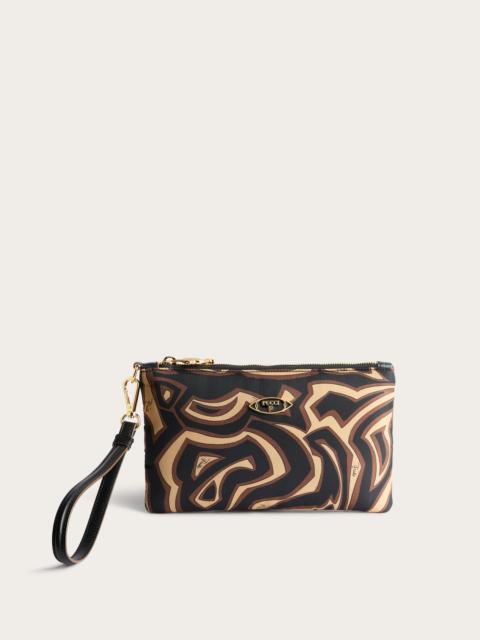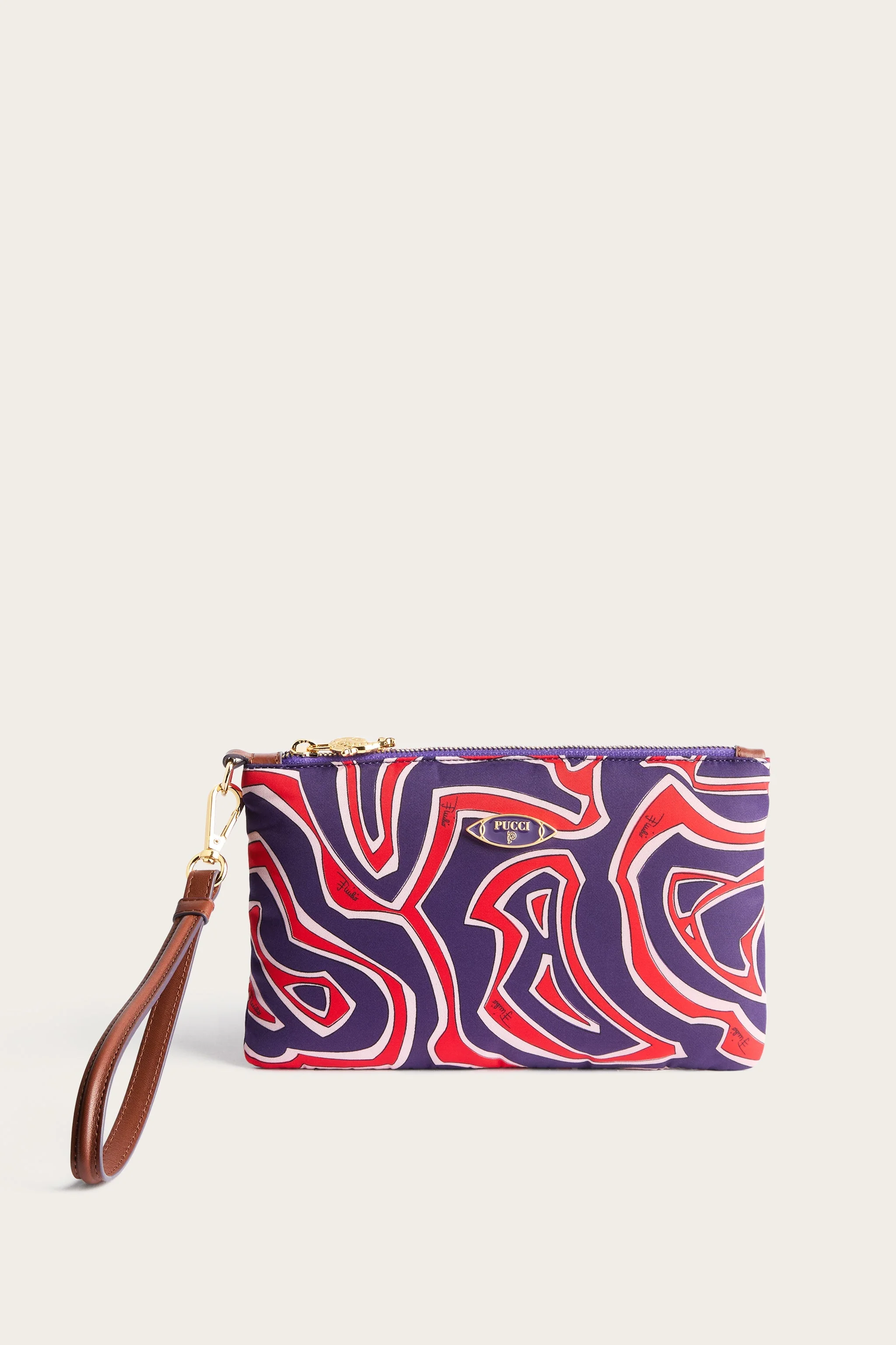 An essential accessory with a bold spirit. This padded flat case combines functionality and style thanks to its compact design and multicolored Labirinto print, which pays homage to the iconic Pucci archive. Featuring a fish-shaped zip pull and an enameled logo plate, it is designed for those who love refined and distinctive details. Ideal for carrying by hand or inside your bag. - To offer you a unique Pucci garment, we use an all-over print that makes the product unrepeatable. Therefore, the pattern print may vary from the one displayed in the photo. - Multicolor - Exterior (fabric): 100% polyamide – Leather exterior: 100% calfskin - Padded design - Zip closure with fish-shaped pull tab - Side handle - Flat interior pocket - Coordinating printed nylon lining - Do not wash - Made in Italy - ID: 5USC205U182060