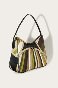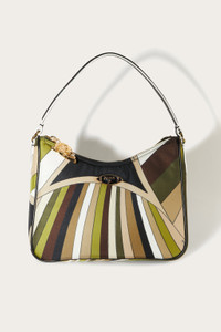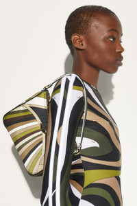 A perfect blend of practicality and contemporary style, the padded nylon shoulder bag is the ideal accessory for those who love functional design that doesn't sacrifice unique details. Printed nylon gives it a modern, durable aesthetic, while nappa or cowhide leather trim adds a touch of handcrafted luxury.Featuring a detachable adjustable shoulder strap, a convenient handle and an interior flat pocket, this bag is designed to accompany you in style from daily routine to leisure. The Pesci-shaped zipper pull and enameled Pucci plaque are the hallmarks that make this a unique accessory, perfect for those who like to stand out with personality. - Khaki - Printed nylon - Detachable handle and shoulder strap (height 50 cm) - Interior flat pocket - Nappa leather trimmings (var. 010 and 011) or Vacchetta leather (var. 007) - Enameled Pucci plaque and fish-shaped zipper pull - Contrast edges - ID: 5HBC205H152011