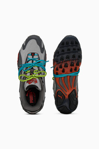 PRODUCT STORY A$AP Rocky brings his signature aesthetic to a brand new capsule with PUMA, made for the concrete jungle. The collection fuses classic streetwear design with striking color pops, technical textures, and touches of motorsport DNA. Two of Rocky’s favored PUMA sneakers – Inhale and Mostro OG – return alongside a bold new style and new personal Flacko favorite: Mostro Gabbia, built with a removable cage. Gritty, bold, and unapologetically A$AP, this drop is geared to stand out. DETAILS - Style: 405474_01 - Color: Team Silver-Flat Medium Gray - Fit: Regular - Toe type: Rounded - Fastener: Laces - Heel Type: Flat - Rubber moulded toecap and back heel piece with raised embossed details - Embossed TPU flame piece on the side - 4 different lace colour options - Translucent gradient outsole - A$AP ROCKY x PUMA co-branding details MATERIAL INFORMATION - Midsole: 100% Synthetic - Sockliner: 100% Textile - Outsole: 100% Rubber - Upper: 86.54% Synthetic, 13.46% Textile - Lining: 100% Textile