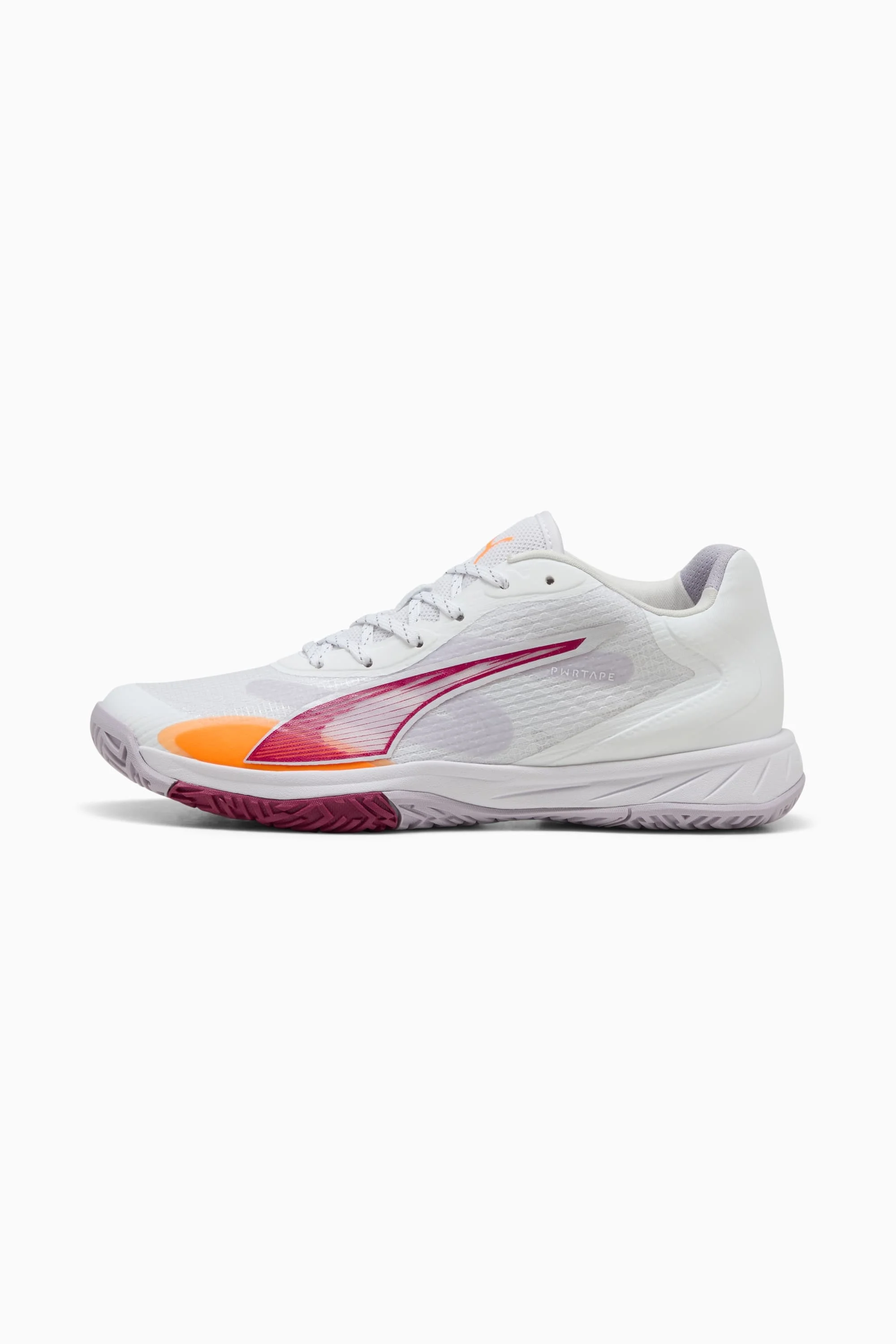 PRODUCT STORY The Accelerate Turbo 4 is built for speed, precision, and control. With advanced cushioning and a lightweight design, these handball shoes give you the edge to outplay the competition. Push limits. Own every move. FEATURES & BENEFITS - PROFOAM: Lightweight EVA designed to cushion your landing and propel your next step - PWRTAPE: Targeted upper reinforcement for support and durability - PUMAGRIP: Durable performance rubber compound designed for all-surface traction - The upper of the shoes is made with at least 20% recycled materials. DETAILS - Style: 108445_01 - Color: PUMA White-Berry-Lilac Crush-Heat Fire - Width: Regular - Toe Type: Rounded - Fastener: Laces - Heel type: Flat - Lining: Textile - The fit is specifically engineered for the anatomical requirements of female athletes - Surface: Indoor - Outsole: Rubber MATERIAL INFORMATION - Midsole: 100% Synthetic - Sockliner: 100% Textile - Outsole: 92% Rubber, 8% Synthetic - Upper: 71.02% Synthetic, 28.98% Textile - Lining: 100% Textile