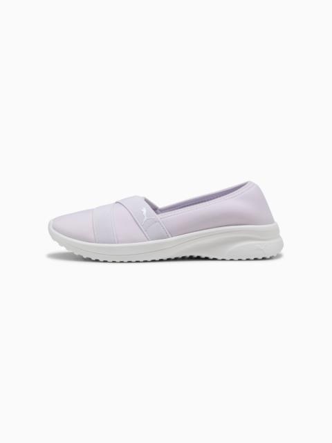 PRODUCT STORY Step into sleek versatility with a minimalist silhouette. Featuring a flexible textile upper, comfortable EVA sole, and SOFTFOAM+ sockliner for superior cushioning. Perfect for every step of your day, these shoes blend comfort and style easily. Embrace the effortless vibe with PUMA. FEATURES & BENEFITS - SOFTFOAM+: Step-in comfort sockliner designed to provide soft cushioning thanks to its extra thick heel DETAILS - Style: 400236_02 - Color: Shadow Gray-PUMA Silver-PUMA Black - Regular width - Flexible textile upper - Lace closure - SOFTFOAM+ sockliner - EVA sole - PUMA branding details MATERIAL INFORMATION - Sockliner: 100% Textile - Outsole: 100% Synthetic - Upper: 100% Textile - Lining: 100% Textile