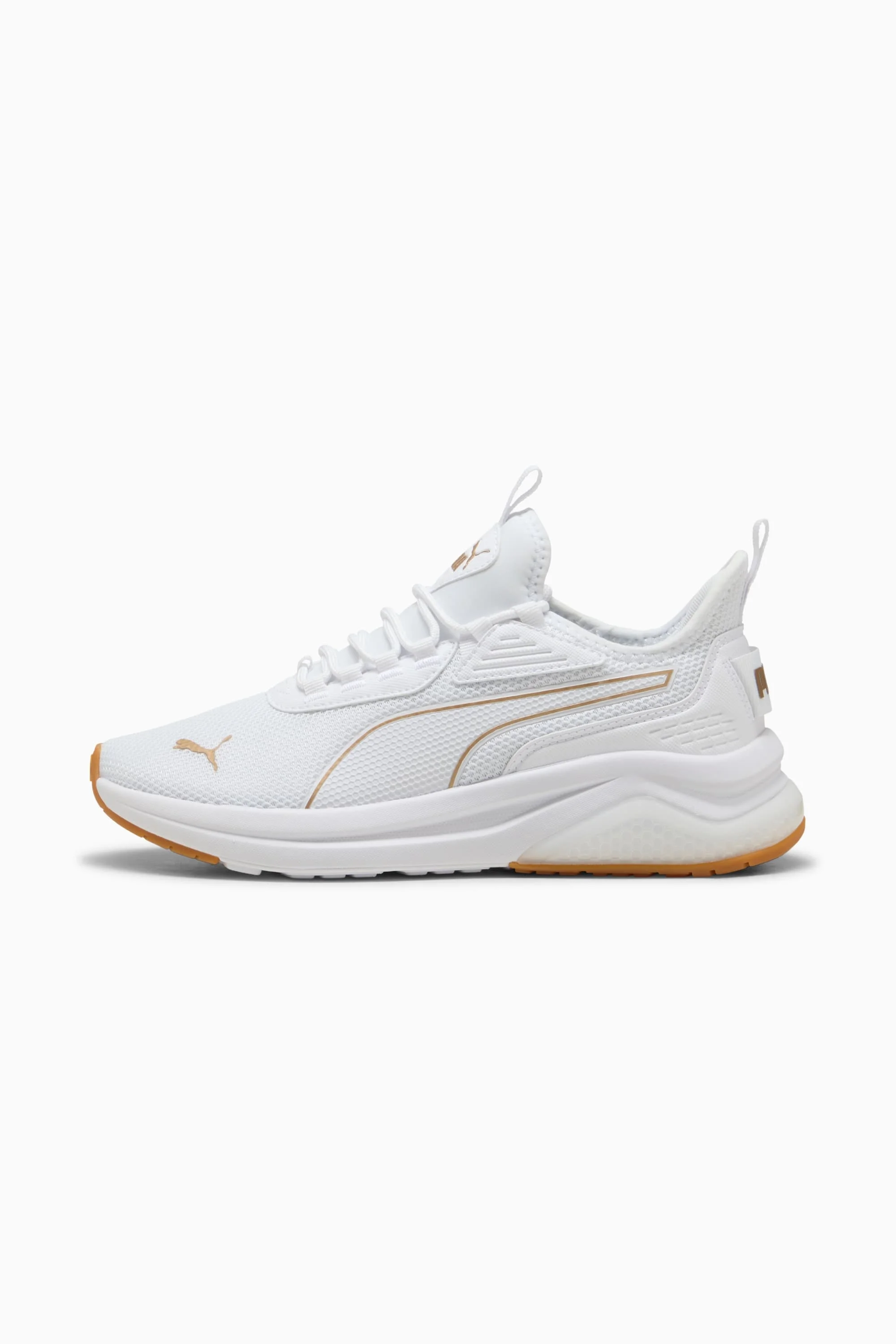 PRODUCT STORY Unleash your potential with these athletic-inspired PUMA kicks. Featuring a knit-like mesh upper, neoprene bootie construction, and a synthetic leather quarter caging, they offer a modern edge. The visible technology heel bubble and SOFTFOAM+ sockliner ensure every step feels cushioned and energized. FEATURES & BENEFITS - SOFTFOAM+: Step-in comfort sockliner designed to provide soft cushioning thanks to its extra thick heel DETAILS - Style: 397681_13 - Color: PUMA White-PUMA Gold - Regular width - Textile upper - Lace closures - Rubber outsole - PUMA branding details - Pronation: Neutral