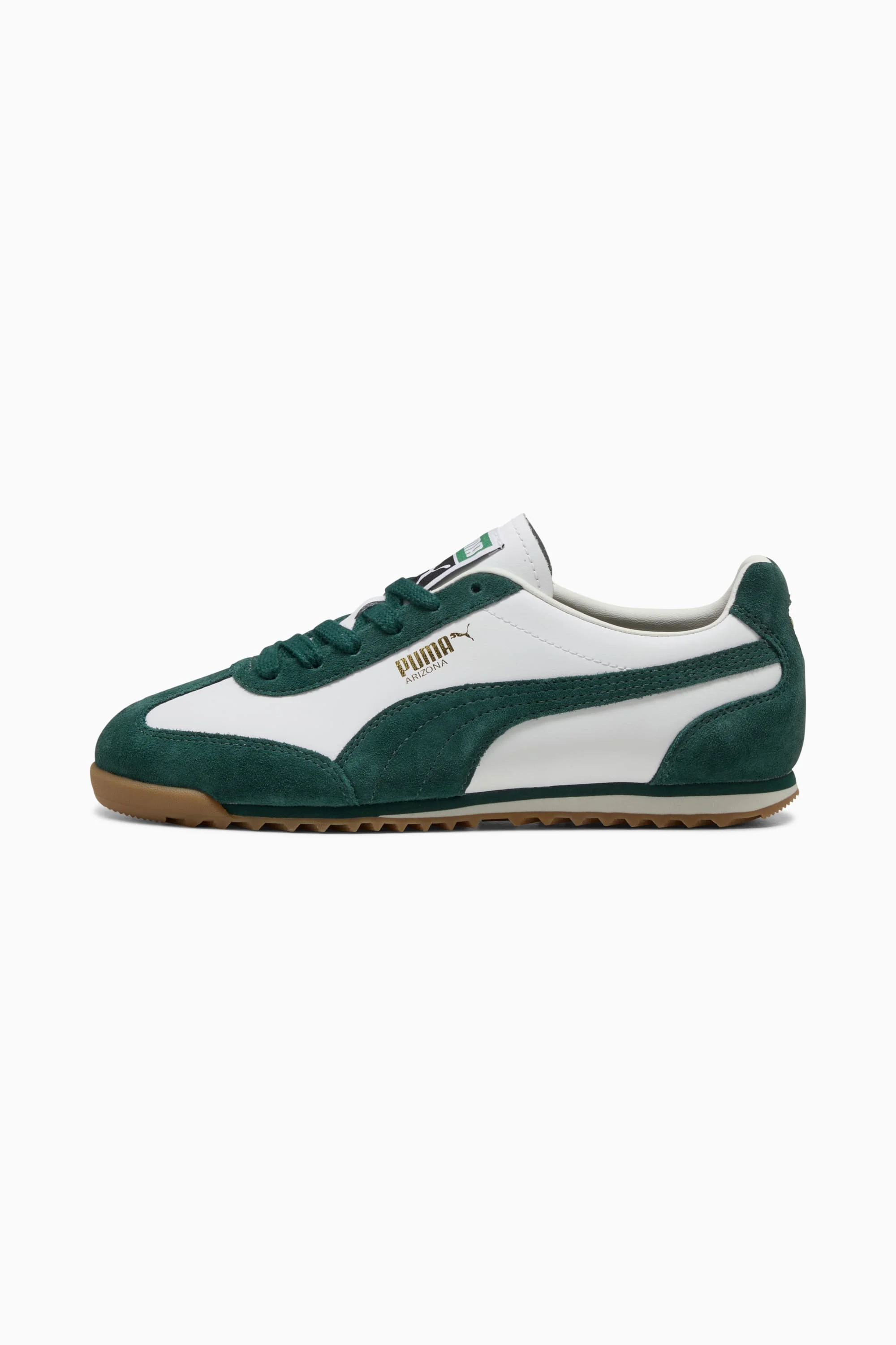 PRODUCT STORY Straight from our 1970s archive, the Arizona was a low-slung training shoe used for a variety of sports. Now it's back with its classic look and timeless appeal. This version features the Arizona's signature short toe box alongside suede overlays and a leather base. The plush EVA midsole deliver comfort and cred with every laid-back step. DETAILS - Style: 402353_04 - Color: PUMA White-Dark Myrtle - Textile upper - Suede overlay - Textile insole - EVA midsole - Rubber outsole - PUMA branding details MATERIAL INFORMATION - Midsole: 100% Synthetic - Sockliner: 100% Textile - Outsole: 100% Rubber - Upper: 99.46% Leather - cow, 0.54% Synthetic - Lining: 100% Synthetic