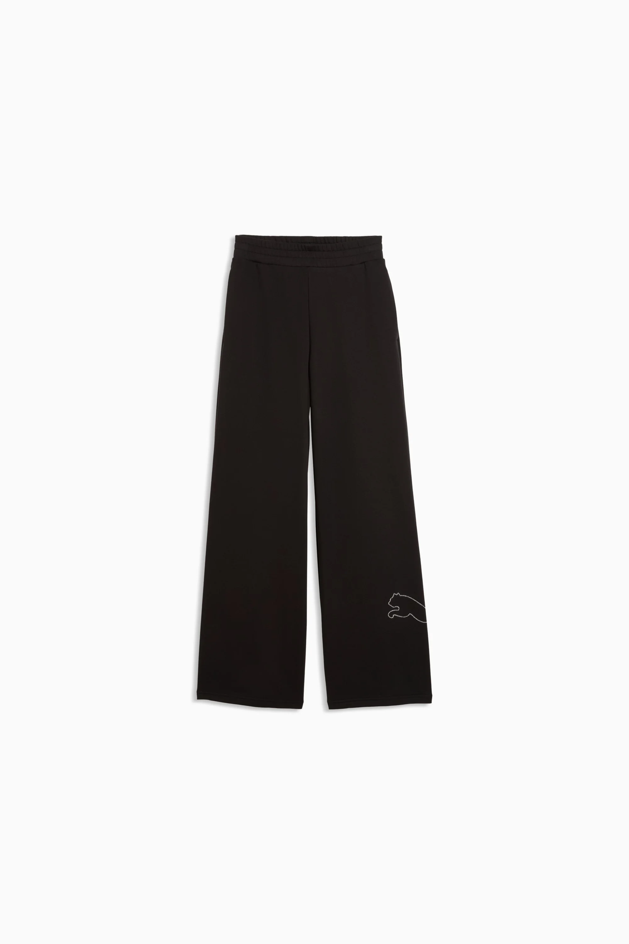 PRODUCT STORY Shine with every step in the Bedazzled Comfort Pants—where luxe meets laid-back. Designed with a flattering high waist and a flowy wide-leg silhouette, these pants bring effortless elegance to your everyday. Whether you're dressing up or winding down, the subtle sparkle and soft feel keep you comfortable and confidently chic. FEATURES & BENEFITS - Made with at least 50% recycled materials. DETAILS - Style: 636903_01 - Color: PUMA Black - Fit: Comfort - Main material type: French Terry - Closure: Elasticated waistband with drawstring - Length: Regular - Rise: High - Pockets: Side pocket - PUMA Cat rhinestone graphic MATERIAL INFORMATION - Upper Pocket Bag: 100% cotton - Shell: 68% cotton, 32% polyester