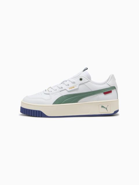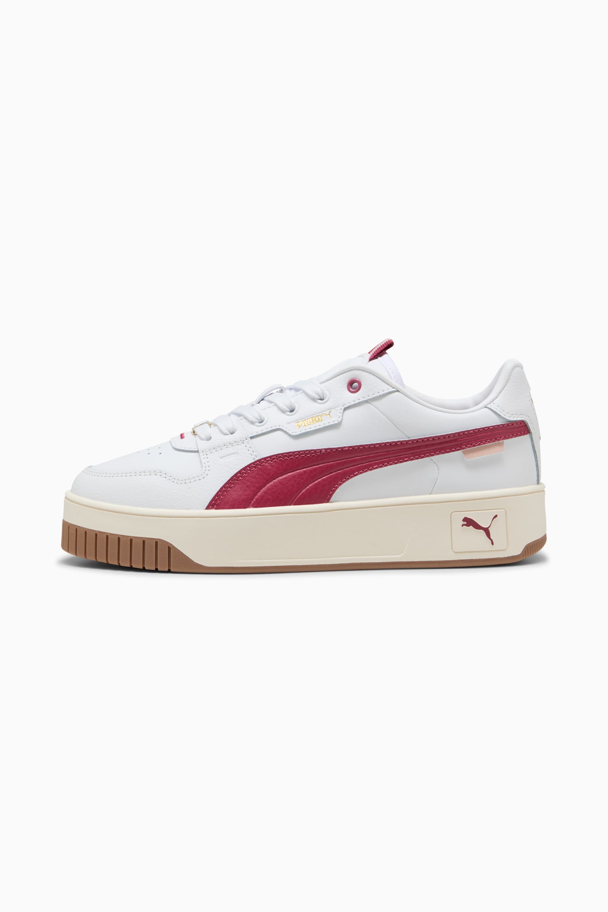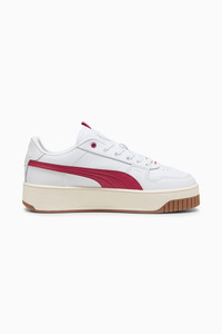 PRODUCT STORY The Carina Street has a streetwear-inspired design in combination with a true platform profile and basketball-inspired details, making it the perfect choice for adding a touch of style to everyday outfit. The premium leather upper and oversized sole exude attitude with every step. Strut the streets in style. FEATURES & BENEFITS - The upper of the shoes is made with at least 20% recycled materials and the bottom is made with at least 10% recycled materials - PUMA's leather products support responsible manufacturing via the Leather Working Group: www.leatherworkinggroup.com - SOFTFOAM+: Step-in comfort sockliner designed to provide soft cushioning thanks to its extra thick heel DETAILS - Style: 397487_09 - Color: PUMA White-Port-PUMA Gold - Regular fit - Leather upper - Toe overlay - Lace closure - Rubber outsole - Cupsole tooling with slightly elevated platform and texture in toe and heel area - Perforation details on vamp - Lace jewellery MATERIAL INFORMATION - Sockliner: 100% Textile - Outsole: 100% Rubber - Upper: 57.05% Leather - cow, 42.95% Synthetic - Lining: 70% Textile, 30% Synthetic