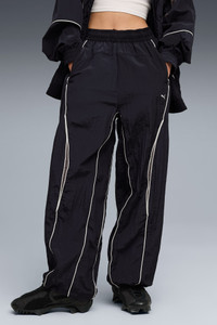 PRODUCT STORY The CLRT collection is a blend of archival design and modern features. Part techwear, part early 2000s, part runway-inspired, the collection includes track jackets and pants with distinctive cut-line details and all-over prints. Pair them with your favorite PUMA sneakers to complete the look. FEATURES & BENEFITS - Made with at least 30% recycled materials. DETAILS - Style: 633021_16 - Color: New Navy - Fit: Relaxed - Main Material: Ripstop - Length: Regular - Rise: Medium - Elasticated waistband with external drawcords - Hem with internal bungee drawcords - Pockets: side zip pockets MATERIAL INFORMATION - Lining: 100% polyester - Shell: 100% nylon
