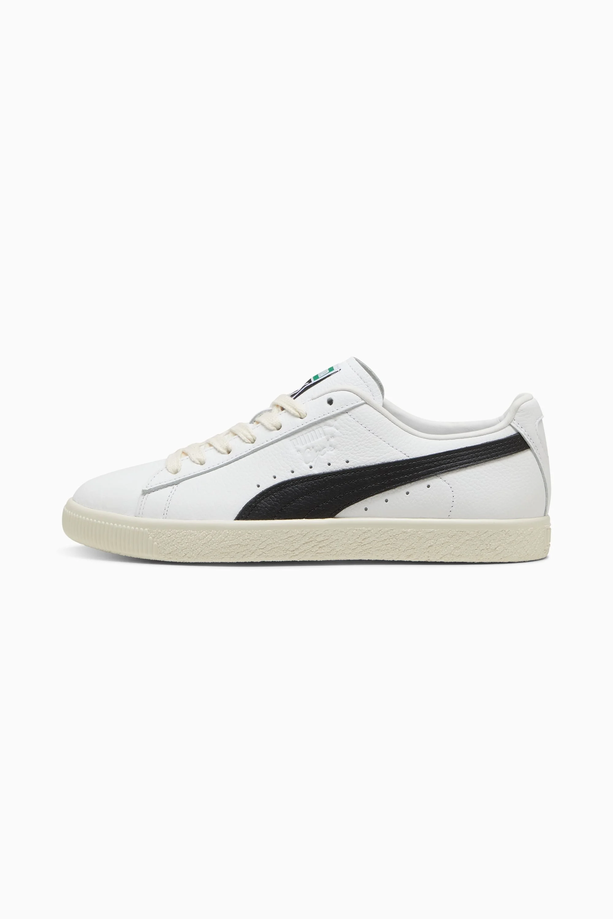 PRODUCT STORY More than just a sneaker – the Clyde is a true icon from the PUMA archive. Just like its namesake, Walt "Clyde" Frazier, the Clyde embodies fashion, culture, and basketball heritage with confidence and flair. This version features a leather upper for a classic, clean look. FEATURES & BENEFITS - PUMA's leather products support responsible manufacturing via the Leather Working Group. www.leatherworkinggroup.com DETAILS - Style: 398703_01 - Color: PUMA White-PUMA Black-Frosted Ivory - Leather upper - Leather overlay details - Breathable synthetic collar - Breathable synthetic moulded sockliner - Rubber midsole - Rubber outsole MATERIAL INFORMATION - Sockliner: 100% Synthetic - Outsole: 100% Rubber - Upper: 100% Leather - cow - Lining: 56.63% Textile, 43.37% Synthetic