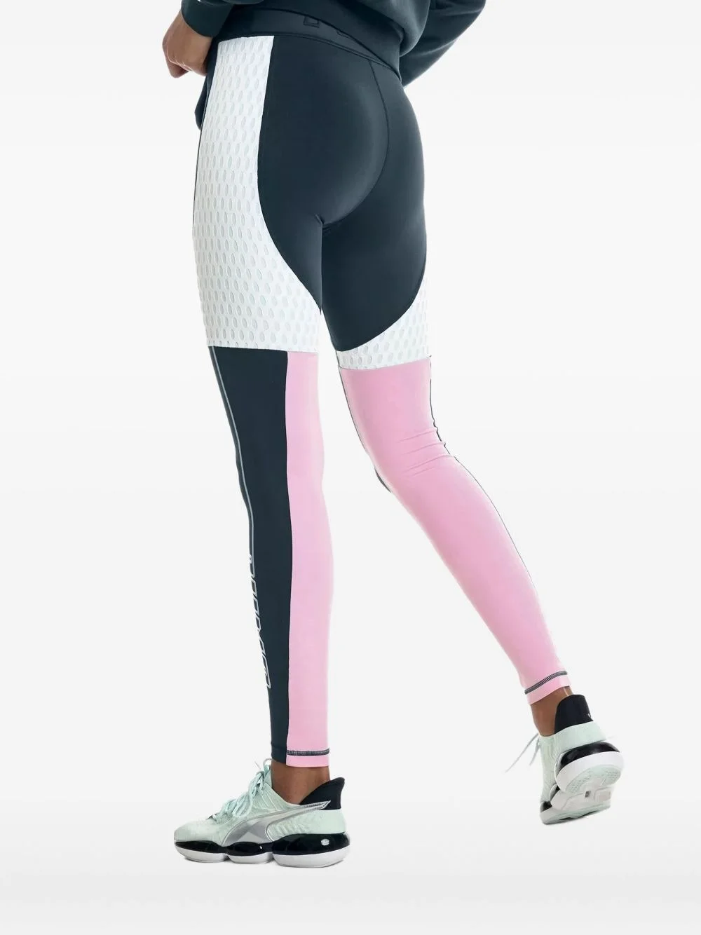 Cosmic colour-block panelled leggings Highlights - Dark teal - Pink and white panelling - High waist - Logo print Imported Composition Polyester 81%, Elastane 19% Washing instructions Read Manufacturer Guidelines
