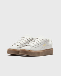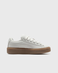 The new FENTY x PUMA Creeper Phatty sneakers feature an eye-catching design fused with soft, natural colors. Gold accents and the classic Creeper sole give this new model from Rihanna a fresh look. - Nubuck leather upper - Lace-up closure - Rubber outsole Article Number: 399866-03 Gender: Women, Kids Color: WARM WHITE-PUMA GOLD-GUM Material: 30% Rubber, 70% Leather