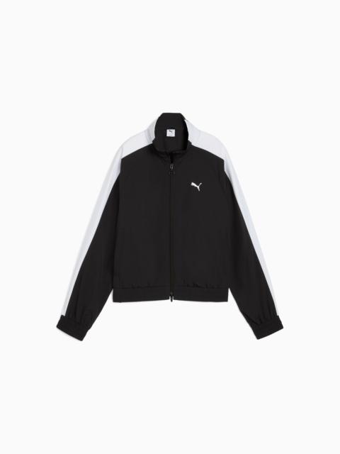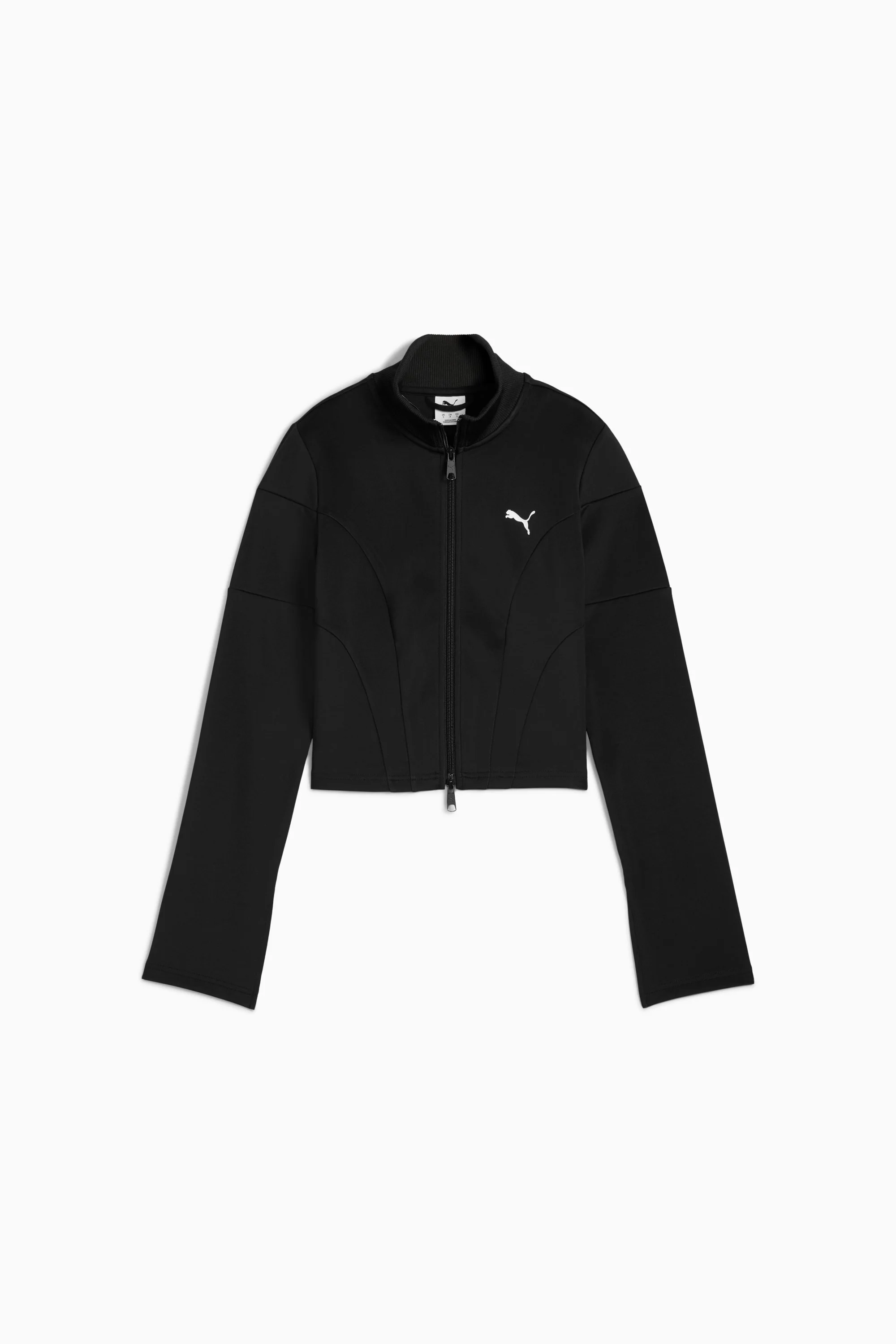 PRODUCT STORY The DARE TO collection makes a statement with bold, fearless designs that push the boundaries of fashion and sport. This season's pieces include wardrobe essentials that let you celebrate your unique style every day—from puffer jackets to flared pants to printed tees. Dare to stand out. Dare to be bold. Dare to be you. FEATURES & BENEFITS - Made with at least 50% recycled materials. DETAILS - Style: 632146_01 - Color: PUMA Black - Fit: Slim - Main material: Spacer - Neck: Stand up collar - Long sleeves with flared hem - Fastener: Full zip with 2-way zipper - Length: Short jacket - Pockets: Side Pocket MATERIAL INFORMATION - Shell: 89% polyester, 11% elastane - Rib: 93% polyester, 7% elastane