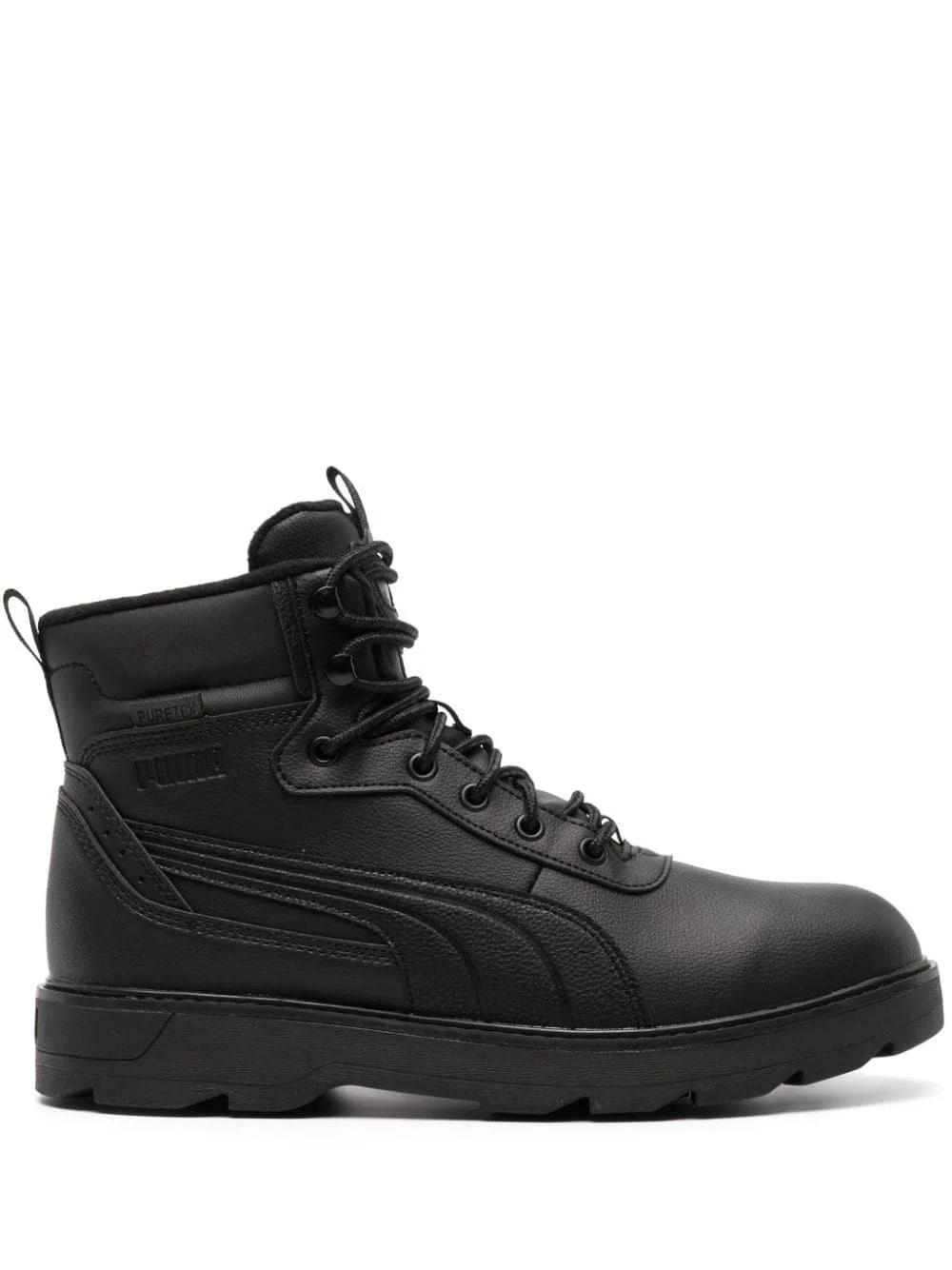 Desierto V3 Puretex faux-leather boots Highlights - Black - Faux leather - Grained texture - Multi-panel design - Debossed logo to the side - Logo patch at the tongue - Debossed logo to the rear - Branded insole - Pull-tab at the tongue - Pull-tab at the heel - Padded ankle - Round toe - Front lace-up fastening - Ankle-length - Ridged rubber sole - When buying this unisex item, keep in mind that it is graded in standard men's sizing. Imported Composition Other fibres 100% SIZE & FIT Measurement HEEL 1.57 in(4 cm) HEIGHT 5.51 in(14 cm) Sole height 0.98 in(2.5 cm)