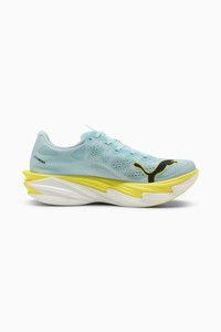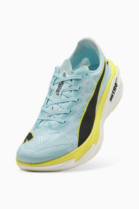 PRODUCT STORY When fast isn’t fast enough, you go beyond. The Deviate NITRO™ Elite 4 is built for race day – those moments when every second counts. Upgraded NITROFOAM™ ELITE delivers elite responsiveness for unbeatable speed, while a reengineered PWRPLATE channels every ounce of energy forward. 12% lighter than its predecessor, Deviate Elite 4 will keep you light, fast, and locked on your goal pace. Every detail is engineered to take you beyond fast. FEATURES & BENEFITS - NITROFOAM™ Elite: Premium performance foam technology that provides pinnacle responsiveness in an extremely lightweight package - PWRPLATE: Carbon fibre plate engineered to maximize energy transfer and delvier a propulsive ride - PUMAGRIP: Durable performance rubber compound designed for all-surface traction DETAILS - Style: 312128_03 - Color: Fresh Water-Lemon Crush-PUMA Black - Width: Regular - Toe type: Rounded - Closure: Laces - Stack height: 40mm/32mm - Heel type: Flat - Weight: 170g (size UK8)? - Cushioning: Max - Heel-to-toe drop: 8mm - Pronation: Neutral - ULTRAWEAVE for an ultra-lightweight feel with PWRTAPE for lockdown MATERIAL INFORMATION - Midsole: 100% Synthetic - Sockliner: 100% Textile - Outsole: 98% Synthetic, 2% Rubber - Upper: 74% Textile, 26% Synthetic - Lining: 100% Textile