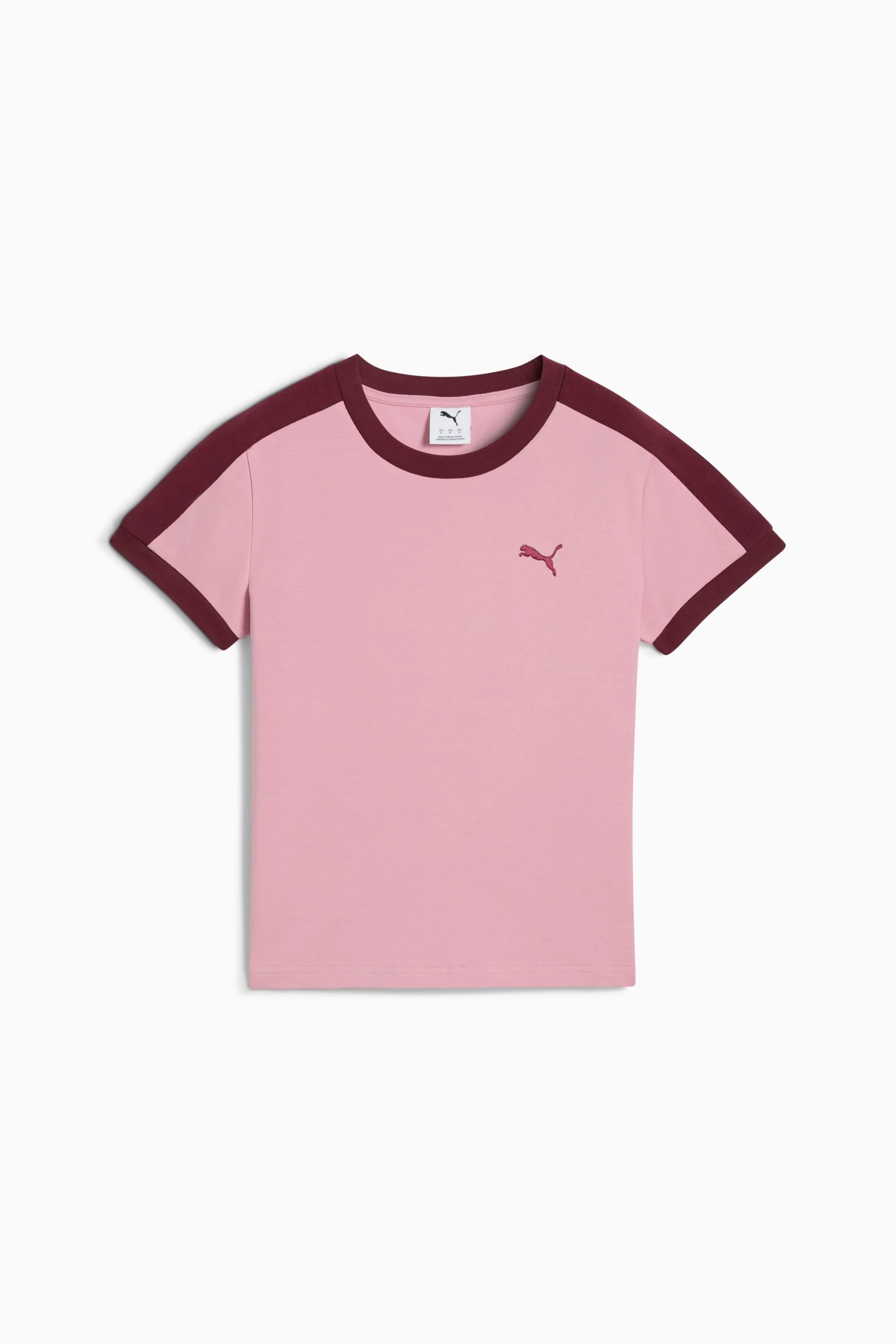 PRODUCT STORY The T7 tracksuit first hit the scene in 1968 and has been redefining style ever since. Today, it's still a timeless streetwear essential, instantly recognizable for its classic cutlines, tapered side panels, and PUMA branding. Now it's back with modern updates and refined details—combining heritage with fresh energy for a new generation. FEATURES & BENEFITS - Made with at least 20% recycled cotton. DETAILS - Style: 632129_65 - Color: Poised Pink - Fit: Slim - Main Material: Single jersey - Neck: Ribbed crew neck - Short sleeves - Ribbed cuffs - Length: Short - Signature PUMA T7 (7cm) stripes along the sleeves MATERIAL INFORMATION - Shell: 95% cotton, 5% elastane - Rib: 80% cotton, 20% polyester