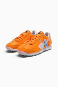 PRODUCT STORY Easy Rider was born in the late '70s, when running transitioned from the track to the streets. Today, the retro runner makes its comeback for the streetwear world, with its classic slim profile and vintage vibes preserved. This timeless silhouette is now available in nostalgic colors with an updated midsole. DETAILS - Style: 404543_01 - Color: Orange Glo-PUMA White-Silver Mist - Width: Regular - Toe Type: Rounded - Fastener: Laces - Main material of upper: Leather - Heel type: Flat - Lining: Textile - Comfortable EVA midsole - Rubber outsole MATERIAL INFORMATION - Sockliner: 100% Textile - Outsole: 100% Rubber - Upper: 65.63% Leather - cow, 33.63% Textile, 0.74% Synthetic - Lining: 100% Textile
