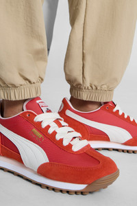 PRODUCT STORY Revive the '70s with PUMA's retro runner. Featuring a nylon base, suede leather overlays, and Valentine's Day-inspired graphic elements, this classic silhouette brings vintage vibes to modern streets. The nylon tongue with woven label and foil-printed branding add a touch of nostalgia to your every step. FEATURES & BENEFITS - PROFOAM: Lightweight EVA designed to cushion your landing and propel your next step DETAILS - Style: 403266_01 - Color: Red Fire-Warm White - Regular width - Textile upper - Lace closure - PUMA branding details MATERIAL INFORMATION - Sockliner: 100% Synthetic - Outsole: 100% Rubber - Upper: 66.79% Leather - cow, 30.98% Textile, 2.23% Synthetic - Lining: 72.37% Synthetic, 27.63% Textile