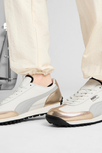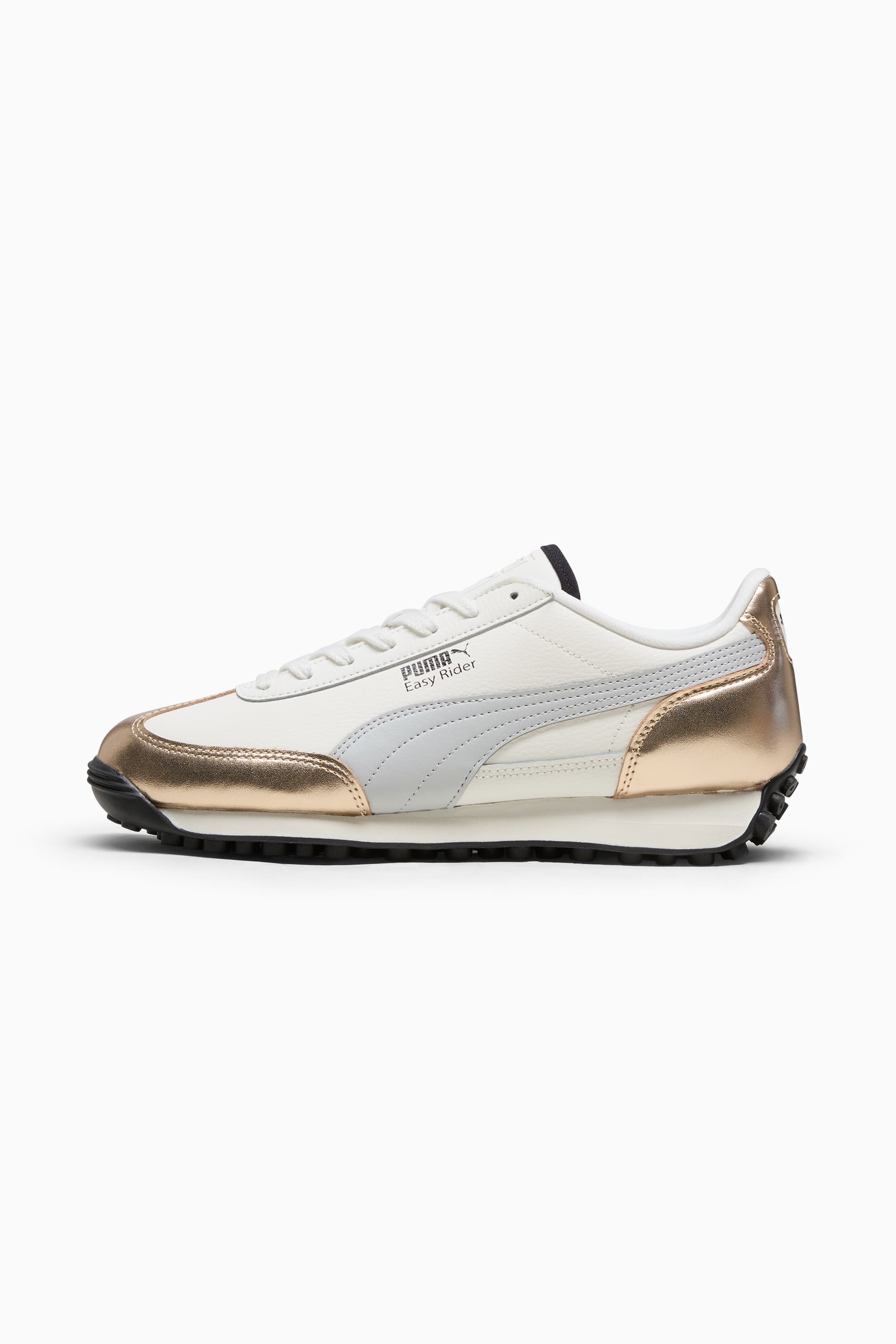 PRODUCT STORY The PUMA Easy Rider was born in the late ‘70s, when running made its move from the track to the streets. Today, the retro runner makes its return for today’s wearers, with its classic slim profile and vintage vibes intact. A truly timeless silhouette, the Easy Rider is an emblem of intergenerational style: a classic piece that’s passed on from parent to child, bridging generations. This execution features hits of metallic. DETAILS - Style: 401824_01 - Color: Warm White-PUMA Gold-Glacial Gray-PUMA Black - Rubber outsole - Leather upper - Low boot - Lace closure - Suede overlays - PUMA branding details MATERIAL INFORMATION - Midsole: 100% Rubber - Sockliner: 100% Textile - Outsole: 100% Rubber - Upper: 82.26% Leather - calf, 17.17% Synthetic, 0.57% Textile - Lining: 100% Textile