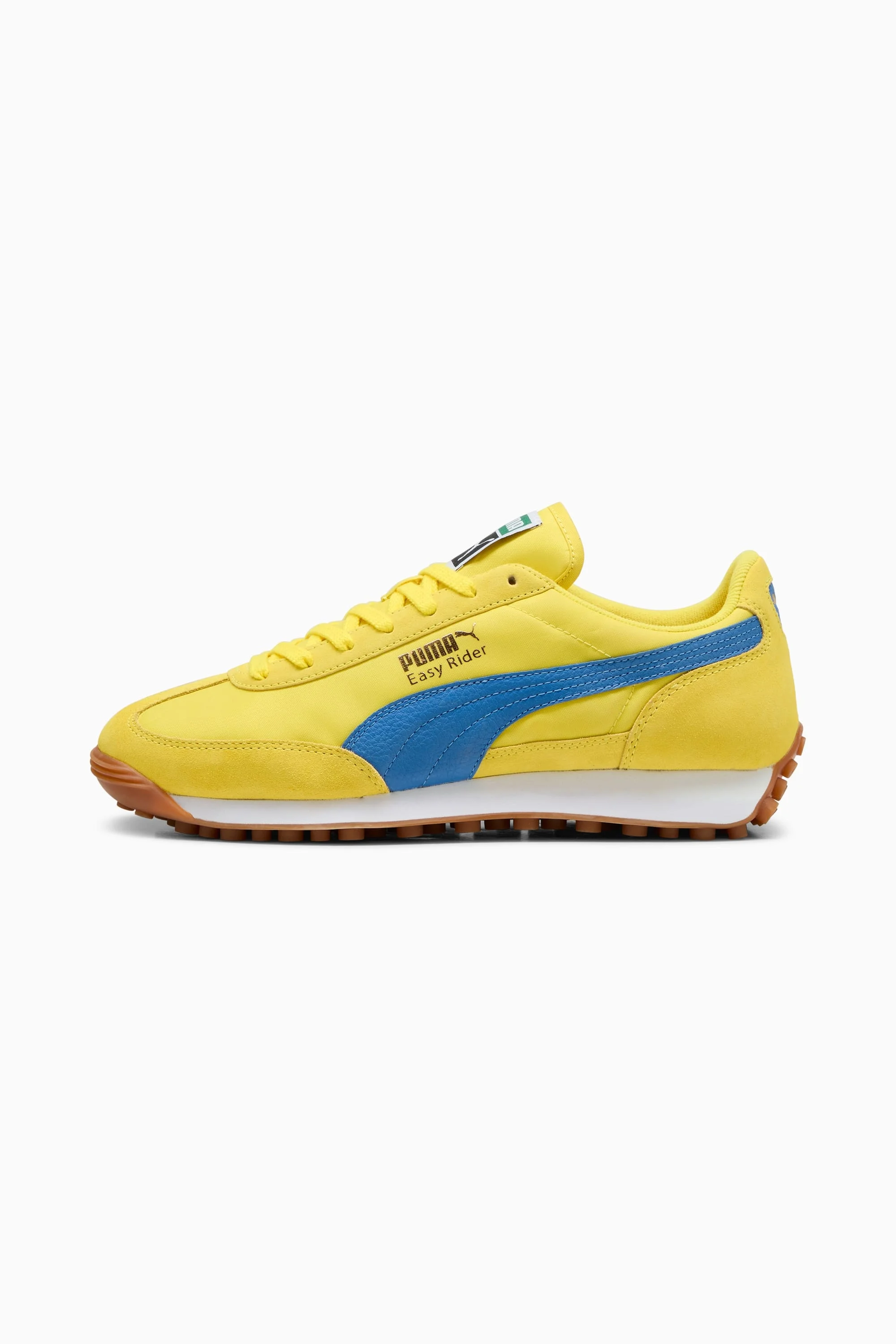 PRODUCT STORY The PUMA Easy Rider was born in the late ‘70s, when running made its move from the track to the streets. Today it's back with its classic slim profile and vintage vibes intact. This version, featuring a textile base and suede leather overlays, is sure to become your go-to for bringing a touch of easy, retro-style to everyday looks. FEATURES & BENEFITS - Leather Working Group (LWG): PUMA’s leather products support responsible manufacturing via the Leather Working Group. www.leatherworkinggroup.com DETAILS - Style: 399028_20 - Color: Speed Yellow-Bluemazing-PUMA Gold - Nylon base - Suede leather quarter and medial overlays - Suede leather toe and heel overlays - Suede leather eyestay - Textile tongue with woven PUMA branding label - Textile collar lining - Textile sockliner with foil printed PUMA branding - Synthetic leather FOT with debossed and foil printed PUMA Cat Logo - Foil printed PUMA and Easy Rider branding details - Synthetic leather PUMA Formstrip MATERIAL INFORMATION - Midsole: 100% Synthetic - Sockliner: 100% Textile - Outsole: 100% Rubber - Upper: 68% Leather - cow, 32% Textile - Lining: 100% Textile