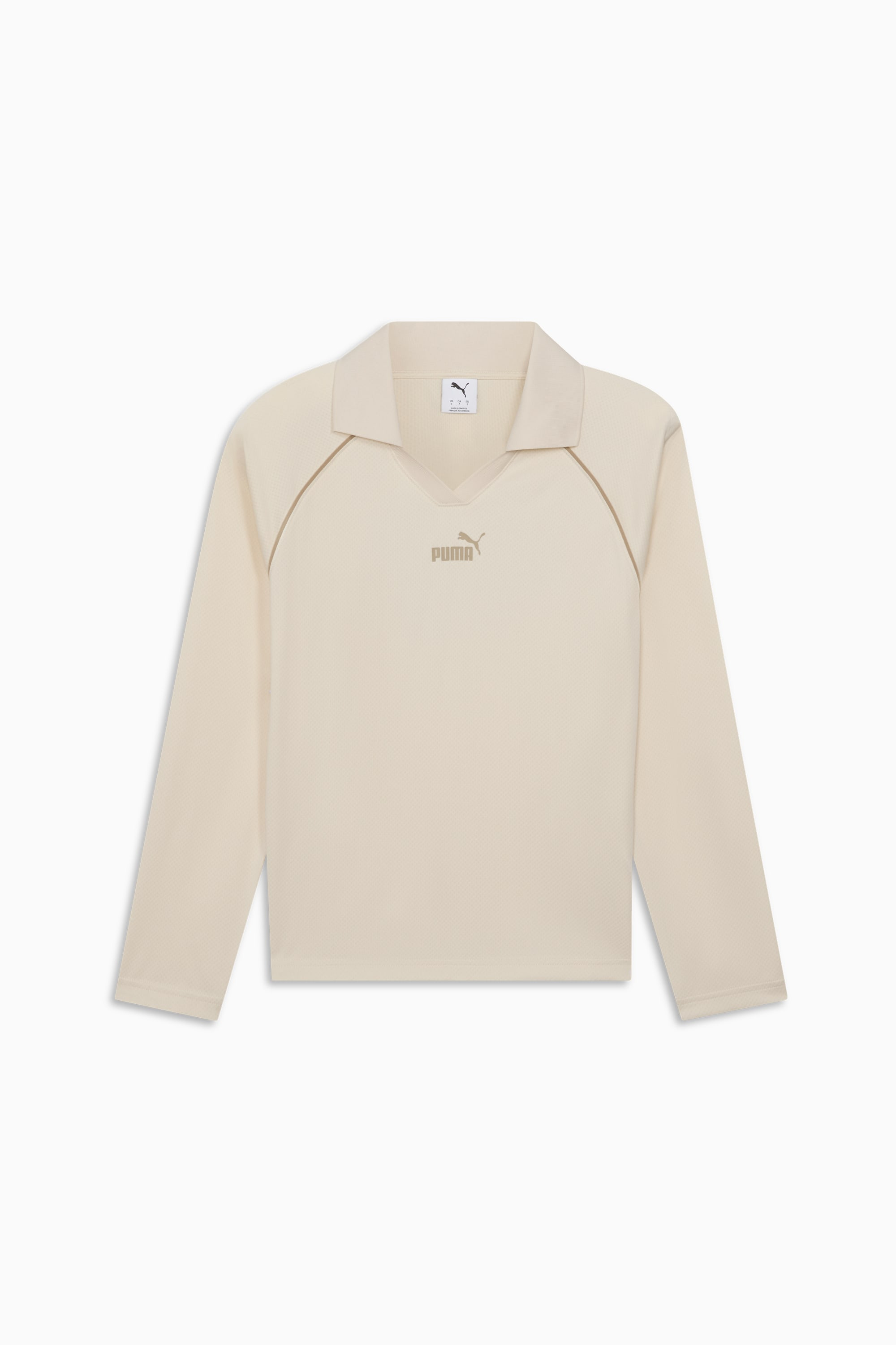 PRODUCT STORY Go bold with jacquard texture and a collared neckline for effortless charm. Designed with dryCELL technology to keep you cool and comfortable during busy days or casual meetups. This relaxed-fit long sleeve delivers PUMA's signature energy to every moment. Perfect for upgrading your wardrobe with ease. FEATURES & BENEFITS - Made with at least 90% recycled materials - dryCELL: Performance technology designed to wick moisture from the body and keep you free of sweat during exercise DETAILS - Style: 690336_87 - Color: Alpine Snow - Fit: Comfort - Main Material: Double face jacquard - V-Neck - Long sleeves MATERIAL INFORMATION - Shell: 100% polyester - Collar: 97% polyester, 3% elastane