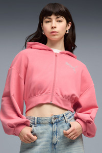 PRODUCT STORY Stylish, comfy, and always on point — the Essentials Graphic collection is made for easygoing days. Whether you're lounging, grabbing coffee, or out and about, these pieces strike the perfect balance between comfort and style. Simple, versatile, and built to keep you feeling good from morning to night. FEATURES & BENEFITS - Made with at least 50% recycled materials. DETAILS - Style: 635394_25 - Color: Wild Pink - Fit: Comfort - Main material type: French terry - Hooded - Long sleeves - Closure: Full zip - Length: Cropped MATERIAL INFORMATION - Hood Lining: 100% cotton - Shell: 68% cotton, 32% polyester