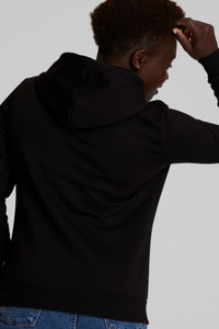 PRODUCT STORY Comfortable looks fashionable in this haute hoodie. Featuring clean, classic lines and subtle branding, you'll make sportswear look street sleek. FEATURES & BENEFITS - Contains Recycled Material: Made with recycled fibres. One of PUMA's answers to reduce its environmental impact. DETAILS - Style: 586799_01 - Color: Puma Black - Regular fit - Jersey-lined hood with drawcord for an adjustable fit - Kangaroo pocket - Ribbed cuffs and hem - PUMA No.1 Logo at left chest MATERIAL INFORMATION - HOOD LINING: 100% cotton - SHELL: 66% cotton, 34% polyester - RIB: 98% cotton, 2% elastane