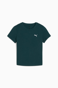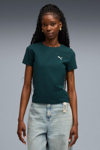 PRODUCT STORY Subtle yet striking, this slim tee features sleek logo embroidery on the chest. An everyday essential for those who appreciate simplicity with a touch of detail. DETAILS - Style: 629742_75 - Color: Green Terrain - Slim fit - 250 gsm, single jersey - Crew neck - Short sleeves - PUMA branding details MATERIAL INFORMATION - Shell: 95% cotton, 5% elastane - Rib: 80% cotton, 20% polyester