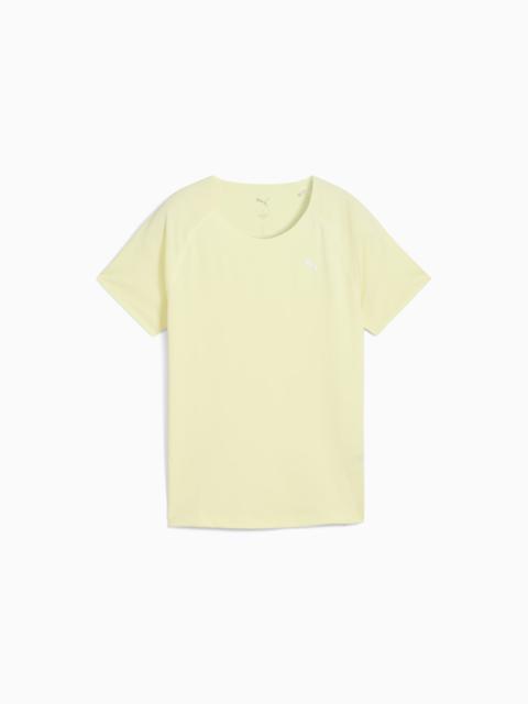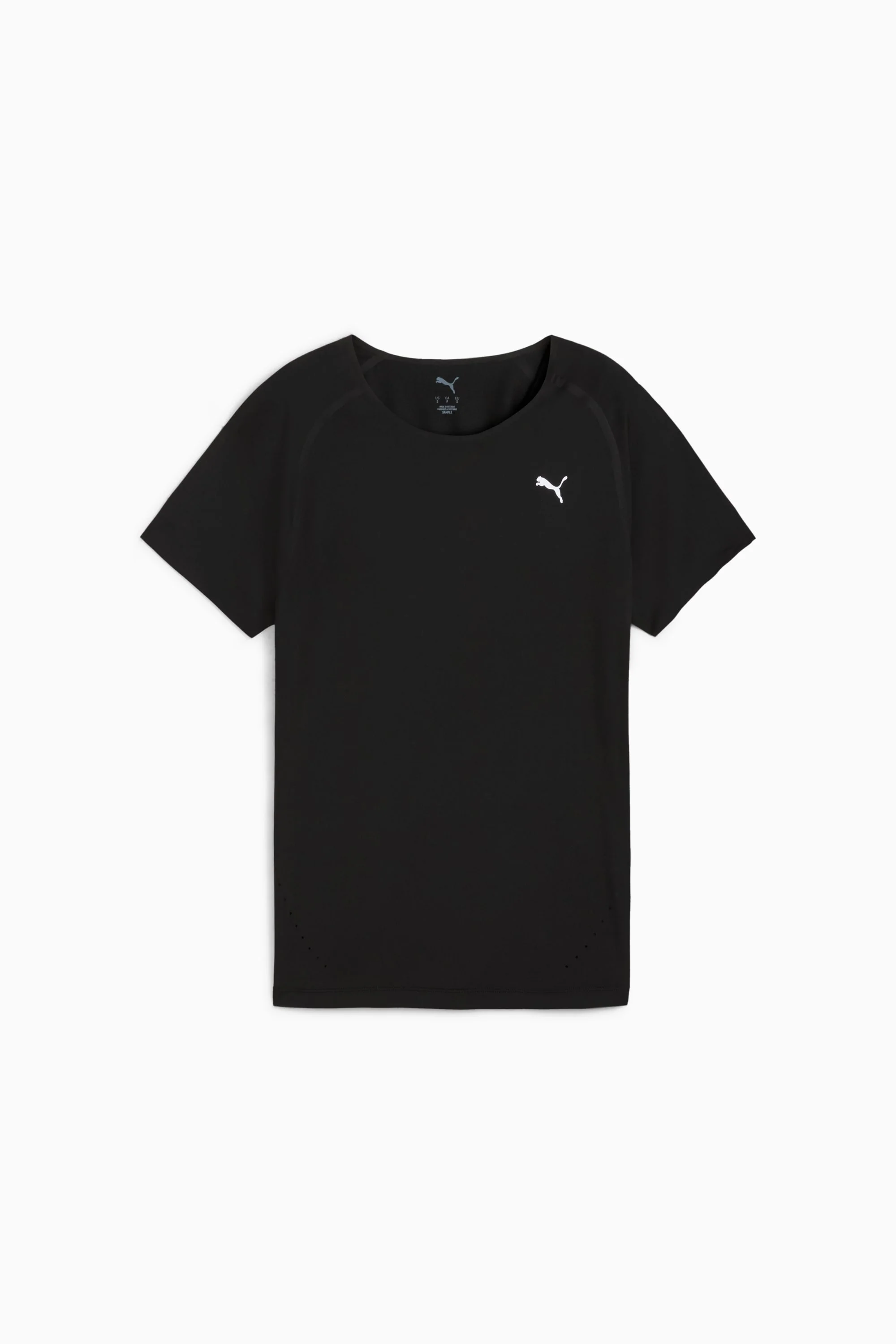 PRODUCT STORY Feel free to run at your best with PUMA's softest fabric, CLOUDSPUN, featuring moisture-wicking dryCELL and 4-way stretch. Laser-cut perforations improve breathability, while bonded seams minimize friction. Thermoadapt technology helps keep you cool as you push your limits. FEATURES & BENEFITS - Made with at least 90% recycled materials - dryCELL: Performance technology designed to wick moisture from the body and keep you free of sweat during exercise - CLOUDSPUN: Custom-milled performance poly/spandex blend, this fabric meets the highest performance standards while still feeling like an ultra soft cotton - Thermoadapt: HeiQ smart temp is a thermos regulation technology that provides fabrics with the ability to dynamically respond to body heat DETAILS - Style: 526652_01 - Color: PUMA Black - Slim fit - Jersey fabric - Regular length - Crew neck - Short sleeves - PUMA branding details MATERIAL INFORMATION - Shell: 94% polyester, 6% elastane