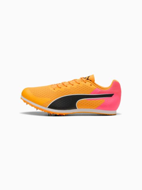 PRODUCT STORY Step up your game with PUMA's latest track spikes. Featuring a breathable mesh upper, extended PEBAX plate, and EVERTRACK heel for durability. Lightweight at 180g, these spikes come with a "FOREVER. FASTER" branded bag. Be ready to dominate. DETAILS - Style: 311379_03 - Color: Sun Stream-PUMA Black-PUMA White - Regular width - Synthetic upper - Lace closure - Shoe weight: 180g (Size UK 8) - Stack height: <20 mm - Comes with a "FOREVER. FASTER." branded nylon spike bag - Recommended for: neutral pronators - PUMA branding details MATERIAL INFORMATION - Midsole: 100% Synthetic - Sockliner: 100% Textile - Outsole: 100% Synthetic - Upper: 62% Synthetic, 38% Textile - Lining: 100% Textile
