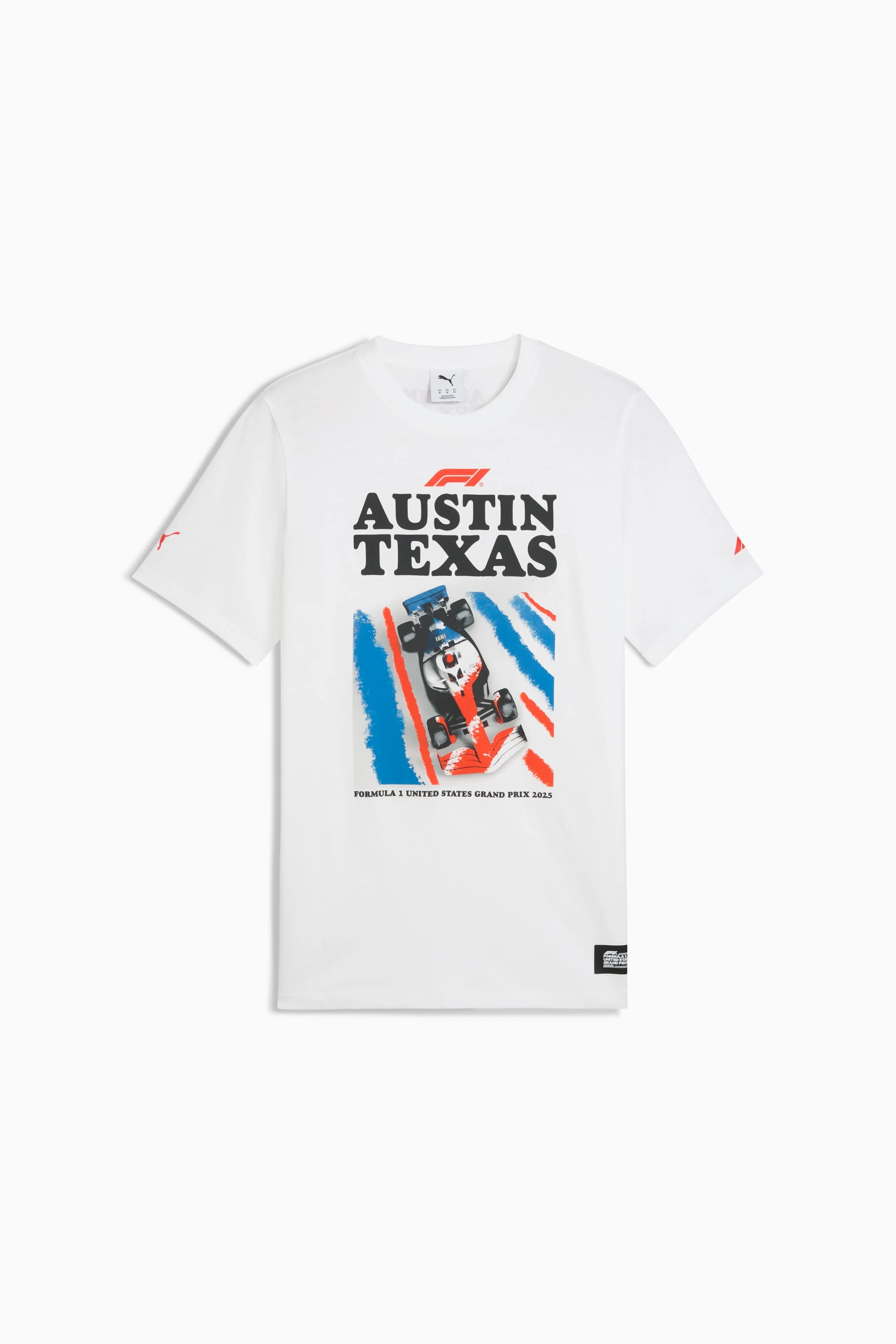 PRODUCT STORY Celebrate race day in this special edition tee which pays tribute to the F1® circuit in Austin, Texas. FEATURES & BENEFITS - Made with at least 20% recycled cotton. DETAILS - Style: 630234_01 - Color: PUMA White - Fit: Regular - Fabric: Jersey - Neck: Crew - Sleeves: Short - F1® Austin branding MATERIAL INFORMATION - Shell: 100% cotton - Rib: 71% cotton, 29% polyester