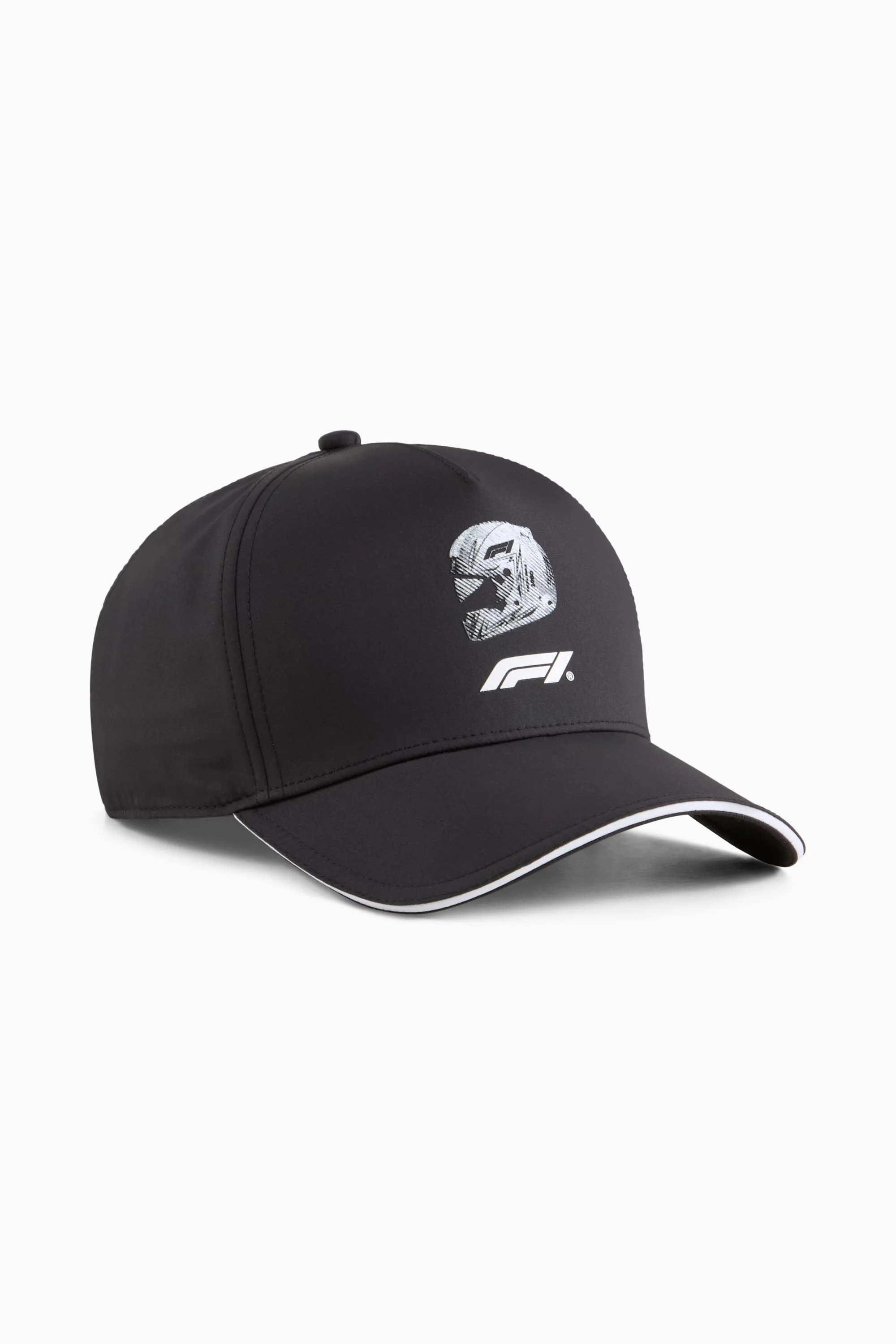 PRODUCT STORY Step up your game with this classic 5-panel cap featuring prints of F1® and PUMA Cat logos. The double-row snapback closure ensures a perfect fit, while the graphic visor adds a bold touch. Perfect for any motorsport enthusiast. FEATURES & BENEFITS - Made with at least 50% recycled materials DETAILS - Style: 026086_01 - Color: PUMA Black - Baseball cap style - Double row snapback closure - HD printed F1® and PUMA Cat logo - HD graphic print on the visor - PUMA branding details MATERIAL INFORMATION - LINING: 100% polyester - SHELL: 100% polyester - FRONT LINING: 100% polyester - UNDER VISOR: 100% polyester