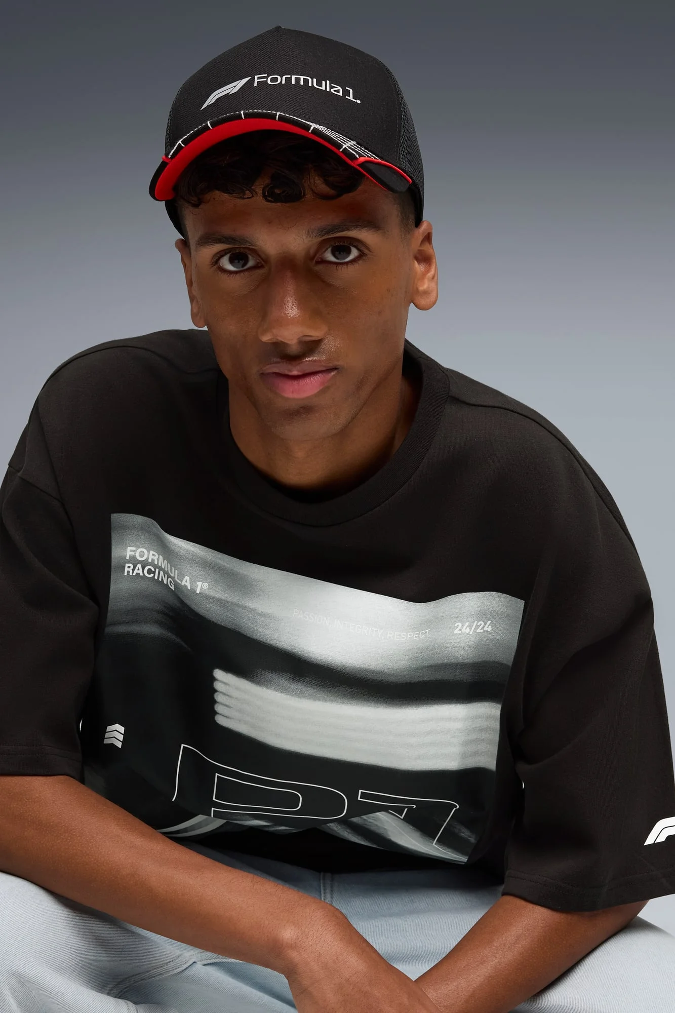 PRODUCT STORY A milestone worth the noise: Formula 1® turns 75. And because legends never slow down, PUMA and FORMULA 1® are celebrating the high-octane journey with a collection that knows how to keep up. 75 years on, faster has never looked better. Race on. FEATURES & BENEFITS - Made with at least 50% recycled materials. DETAILS - Style: 026433_01 - Color: PUMA Black - Structured cap - Regular fit - 5 panel design - Embroidered eyelets - Pre-curved visor - Adjustable snapback closure - F1® and PUMA branding details MATERIAL INFORMATION - Shell: 100% cotton - Front Lining: 100% polyester - Under Visor: 100% polyester