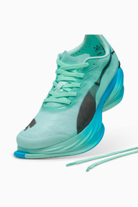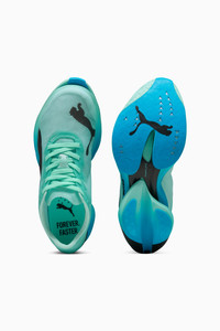 PRODUCT STORY Fast-R3 is the fastest running shoe we’ve ever made – data-back, lab-tested, and built for breakthroughs. After testing it on elite runners and real athletes, we digitally engineered and optimized the product fully based on data. Fast-R3 is designed to shave minutes off your race time. With its 3.15% improved running economy*, this translates to an unprecedented potential marathon time saving of more than 4 minutes and 30 seconds, for a 3 hour marathon runner. We cut 95g from its predecessor, stacked it higher with new and improved NITROFOAM™ ELITE, and extended the carbon PWRPLATE for maximum propulsion. *Compared to the PUMA Fast-R NITRO™ Elite 2 FEATURES & BENEFITS - ULTRAWEAVE: Premium lightweight material engineered for breathability - NITROFOAM™ ELITE: Innovative nitrogen-infused foam technology that offers exceptional energy return, unbeatable speed, and greater long-distance comfort for race-day - PWRPLATE: Extended carbon fiber plate for powerful propulsion and elite efficiency DETAILS - Style: 312061_02 - Color: Mint Melt-Speed Blue - Regular fit - Stack height: 40mm/32mm - Heel-to-toe drop: 8mm - Cushioning: max - Recommended for: neutral pronators - Lifespan: 300km MATERIAL INFORMATION - Midsole: 100% Synthetic - Sockliner: 100% Textile - Outsole: 90% Rubber, 10% Synthetic - Upper: 80% Textile, 20% Synthetic - Lining: 100% Textile