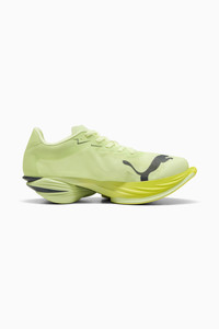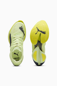 PRODUCT STORY Fast-R3 is the fastest running shoe we’ve ever made – data-back, lab-tested, and built for breakthroughs. After testing it on elite runners and real athletes, we digitally engineered and optimized the product fully based on data. Fast-R3 is designed to shave minutes off your race time. With its 3.15% improved running economy*, this translates to an unprecedented potential marathon time saving of more than 4 minutes and 30 seconds, for a 3 hour marathon runner. We cut 95g from its predecessor, stacked it higher with new and improved NITROFOAM™ ELITE, and extended the carbon PWRPLATE for maximum propulsion. *Compared to the PUMA Fast-R NITRO™ Elite 2 FEATURES & BENEFITS - ULTRAWEAVE: Premium lightweight material engineered for breathability - NITROFOAM™ ELITE: Innovative nitrogen-infused foam technology that offers exceptional energy return, unbeatable speed, and greater long-distance comfort for race-day - PWRPLATE: Extended carbon fiber plate for powerful propulsion and elite efficiency DETAILS - Style: 312061_06 - Color: Apple Spritz-Deep Plum - Regular fit - Stack height: 40mm/32mm - Heel-to-toe drop: 8mm - Cushioning: max - Recommended for: neutral pronators - Lifespan: 150km MATERIAL INFORMATION - Midsole: 100% Synthetic - Sockliner: 100% Textile - Outsole: 90% Rubber, 10% Synthetic - Upper: 80% Textile, 20% Synthetic - Lining: 100% Textile