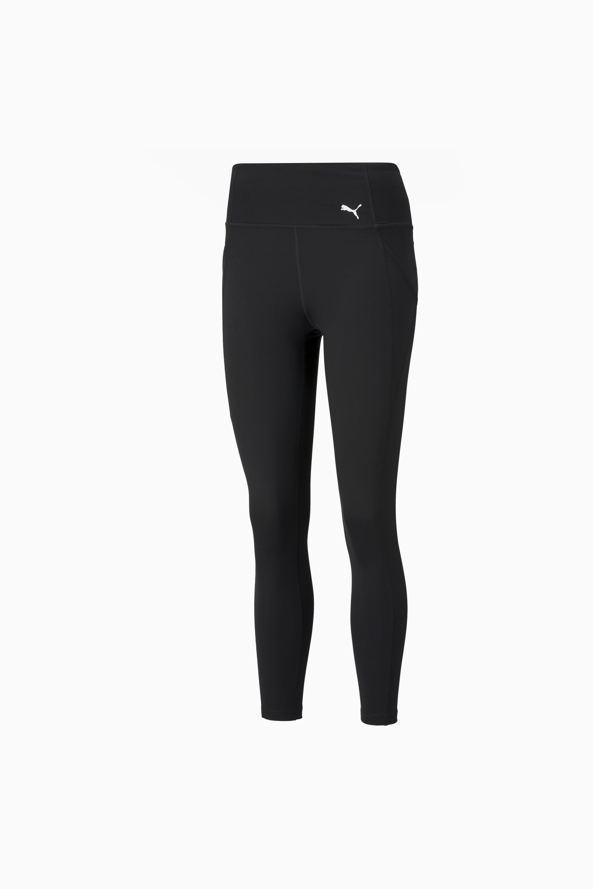 PRODUCT STORY Maximum range of movement and moisture-wicking, bio-based fabrication make the Favorite FOREVER High-Waist 7/8 Women's Training Leggings the ideal choice for your intense, soul-cleansing yoga sessions. The close fit matched with the high waist creates comfort and coverage throughout the entire workout. FEATURES & BENEFITS - dryCELL: PUMA's designation for moisture-wicking properties that help keep you dry and comfortable - Flatlock Stitching: PUMA's solution for less friction and higher comfort - Recycled Content: Made with at least 20% recycled material as a step toward a better future DETAILS - Style: 520267_01 - Color: Puma Black - Our model is 173 cm tall and is wearing size S - Tight fit - Slit pocket built into waistband - Moisture-wicking fabric - PUMA Cat Logo at left hip - Polyester and elastane MATERIAL INFORMATION - SHELL: 89% polyester, 11% elastane - INNER WAISTBAND: 82% nylon, 18% elastane