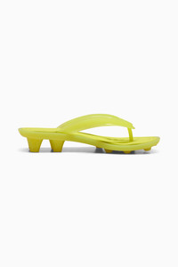 PRODUCT STORY With a luxuriously comfortable jelly design, the never-before-seen FENTY x PUMA Cat Cleat Jelly brings a sporty edge with soccer-inspired cleats on the sole. DETAILS - Style: 404775_01 - Color: Lime Sheen - Regular fit - TPU strap - Leather footbed - Soccer-inspired "cleat" design on the sole - FENTY x PUMA co-branding details MATERIAL INFORMATION - Sockliner: 100% Synthetic - Outsole: 100% Rubber - Upper: 100% Synthetic