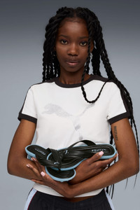 PRODUCT STORY Inspired by the PUMA Striker, the FENTY x PUMA Cat Cleat features a sleek slip-on design and football-style cleats at the sole. It’s streetwear with a stadium twist. DETAILS - Style: 404770_02 - Color: PUMA Black-Haute Tropic - Slip-on design - Football cleat-inspired (studs) design detail on the sole - Inspired by the PUMA Striker - Jelly midsole - FENTY x PUMA co-branding details MATERIAL INFORMATION - Sockliner: 100% Synthetic - Outsole: 100% Rubber - Upper: 100% Synthetic - Lining: 100% Textile