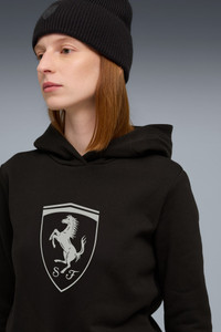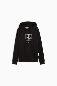 PRODUCT STORY The PUMA and Scuderia Ferrari collection pays homage to motorsport excellence and Ferrari's legendary racing legacy. This range of shoes, clothing, and accessories combines style, comfort, and performance with the iconic Scuderia Ferrari colors and details, so you can carry the Ferrari legacy wherever you go. FEATURES & BENEFITS - Made with at least 50% recycled materials. DETAILS - Style: 632793_01 - Color: PUMA Black - Fit: Relaxed - Main material: Fleece - Hooded - Long sleeves - Length: Cropped - Pockets: Kangaroo Pocket - Scuderia Ferrari and PUMA branding details MATERIAL INFORMATION - Hood Lining: 100% cotton - Shell: 66% cotton, 34% polyester - Rib: 97% cotton, 3% elastane