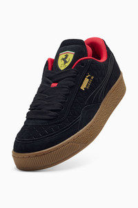 PRODUCT STORY The PUMA and Scuderia Ferrari collection is a tribute to motorsport excellence and Ferrari's legendary racing heritage. This line of shoes, clothing, and accessories combines style, comfort, and performance with the iconic Scuderia Ferrari colors and details, so you can embrace the Ferrari legacy wherever you go. FEATURES & BENEFITS - The upper of the shoes is made with at least 20% recycled materials. DETAILS - Style: 308900_01 - Color: PUMA Black-Rosso Corsa - Width: Regular - Toe Type: Rounded - Fastener: Laces - Heel type: Flat - Exaggerated padded collar and tongue - Chunky sole - Scuderia Ferrari and PUMA branding details MATERIAL INFORMATION - Sockliner: 100% Textile - Outsole: 100% Rubber - Upper: 91.99% Leather - cow, 8.01% Textile - Lining: 100% Textile