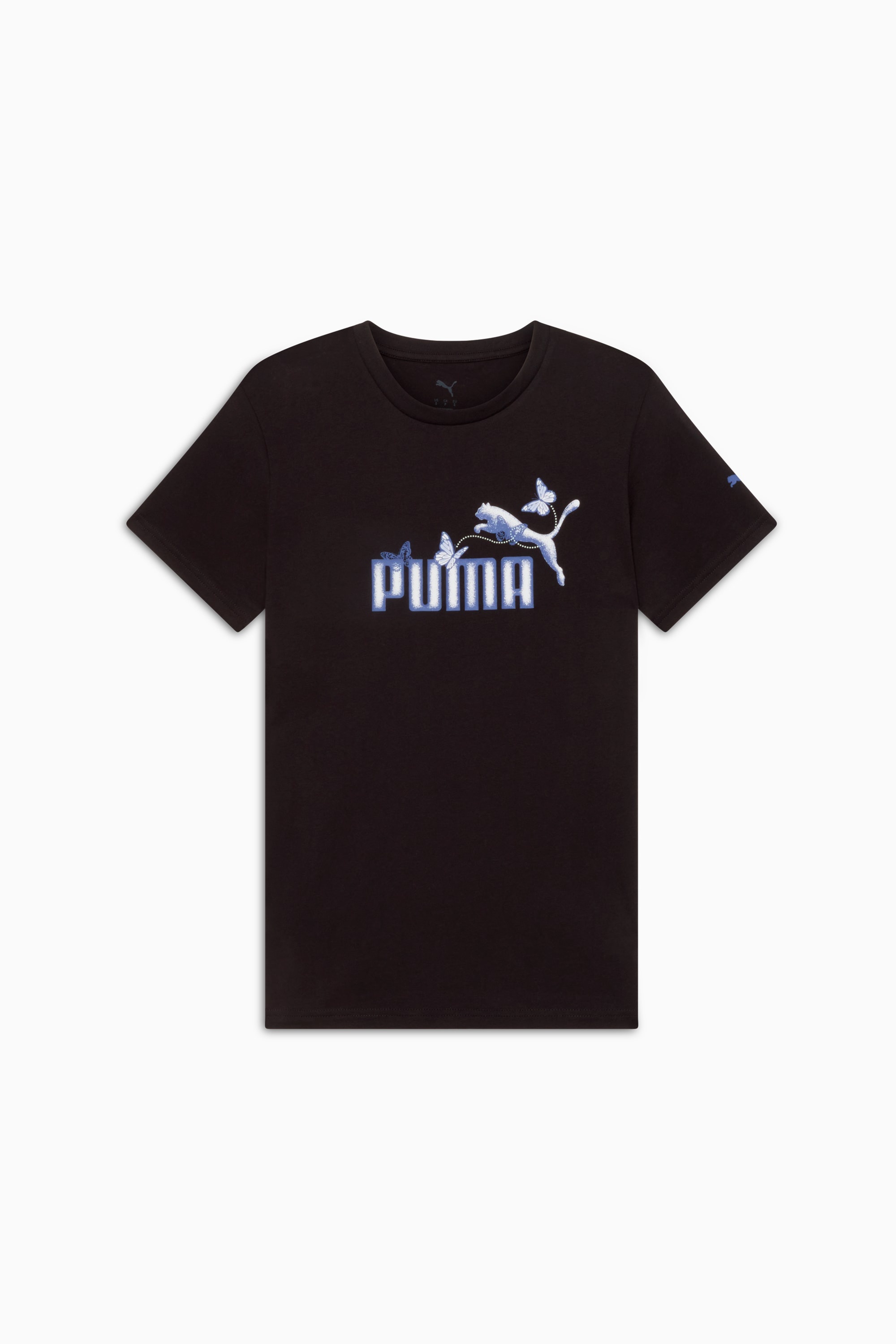 PRODUCT STORY Bring a cool boost to your wardrobe with this cozy cotton tee, showcasing butterfly graphics for extra chill vibes. This tee's comfort fit makes it the perfect choice for a laid-back day. FEATURES & BENEFITS - Made with at least 20% recycled cotton DETAILS - Style: 686225_01 - Color: PUMA Black - 70% cotton, 30% recycled cotton - Comfort fit - Short sleeves - Crew neck - PUMA branding details MATERIAL INFORMATION - Shell: 100% cotton - Rib: 70% cotton, 30% polyester